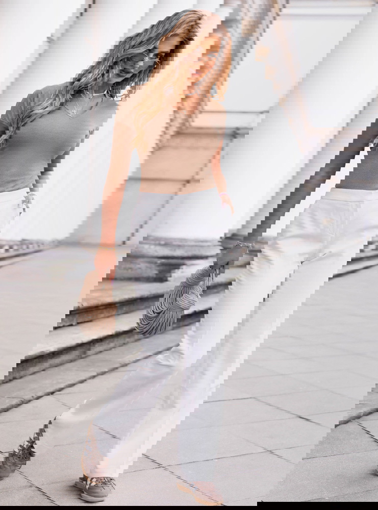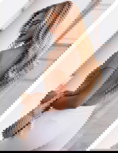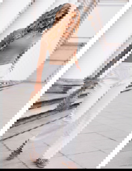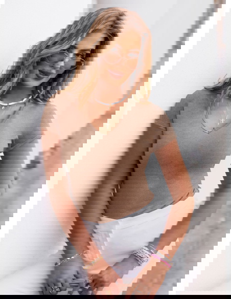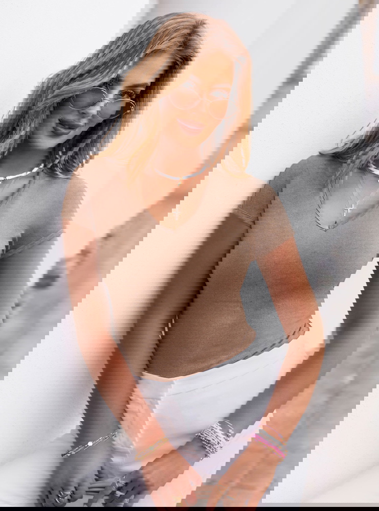 Koszulka z dekoltem w serek Lorrene - mocha mousse może być noszona pod marynarką lub lekkim swetrem, zapewniając dodatkową warstwę ochrony przed zimnem bez utraty elegancji i swobodnego charakteru stylizacji.Może być używana jako element sportowego stroju, gdy zostanie zestawiona z legginsami lub szortami, umożliwiając wygodne wykonywanie lekkich ćwiczeń, takich jak joga czy spacery na świeżym powietrzu.