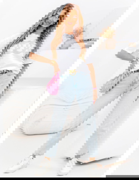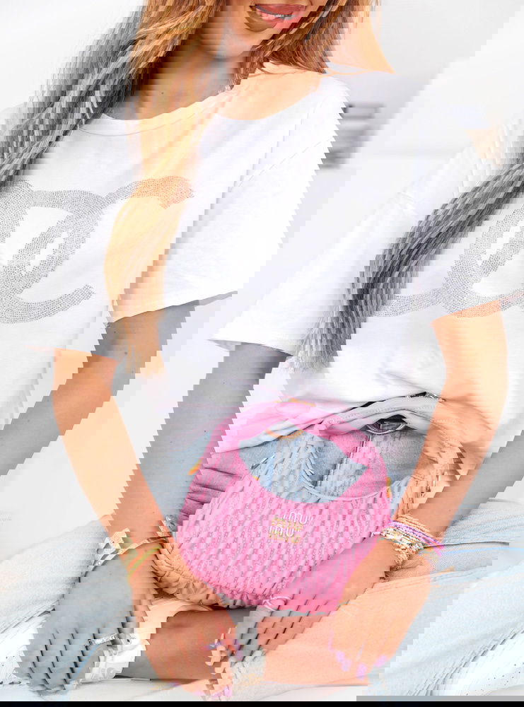 Biała koszulka z cyrkoniami Linalia -