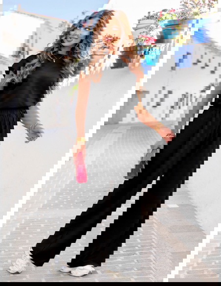 Czarny komplet bluzka i szerokie spodnie Manilaa