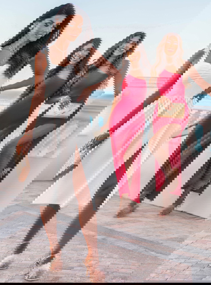 Wzrost modelek na wspólnym zdjęciu w tej samej sukience (od lewej): 175 cm, 168 cm, 170 cm