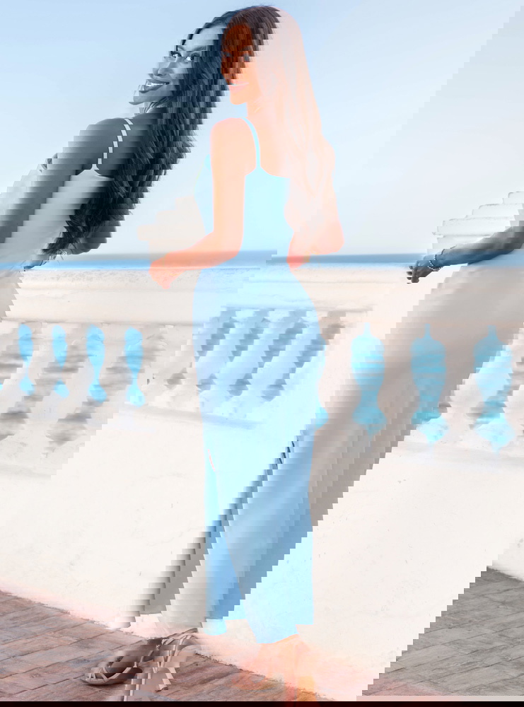 Błękitna satynowa długa sukienka na ramiączkach Mariely to ucieleśnienie letniego uroku, delikatności i kobiecej lekkości. Model ten pochodzi z kolekcji Costa Del Amor, która celebruje romantyzm, śródziemnomorską energię i niezapomniane chwile pod gołym niebem. Jasny, pastelowy odcień błękitu przywodzi na myśl bezchmurne niebo i spokojne morze, a jednocześnie wnosi świeżość i subtelny wdzięk do każdej stylizacji. To sukienka stworzona z myślą o kobietach, które chcą wyglądać elegancko, ale bez zbędnej przesady – z klasą, lekkością i swobodą. Cienkie ramiączka, połyskujący materiał i zmysłowe rozcięcie na nodze tworzą całość, która pięknie układa się w ruchu. Niezależnie od okazji, ta kreacja gwarantuje styl i komfort – od ślubów plenerowych, przez wieczory panieńskie, aż po romantyczne randki nad brzegiem morza. To model, w którym każda kobieta poczuje się wyjątkowo i kobieco. Sukienka, która rozświetla spojrzenia i zostaje w pamięci.