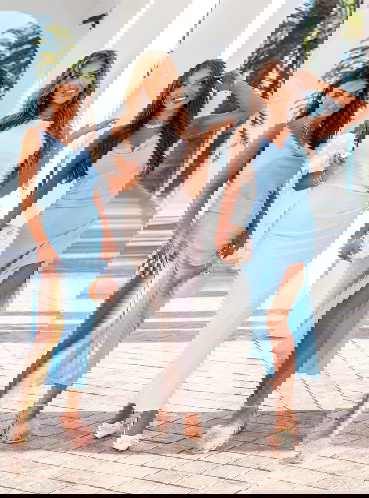 Błękitna satynowa długa sukienka na ramiączkach Mariely to idealny wybór na wiele wyjątkowych okazji. Sprawdzi się doskonale jako stylizacja dla druhen – pastelowy błękit pięknie współgra z bielą sukni ślubnej i idealnie wpisuje się w romantyczny klimat wesel plenerowych lub nadmorskich.