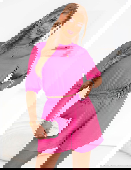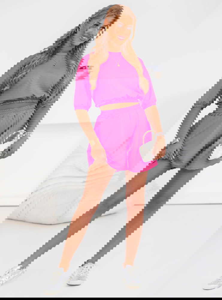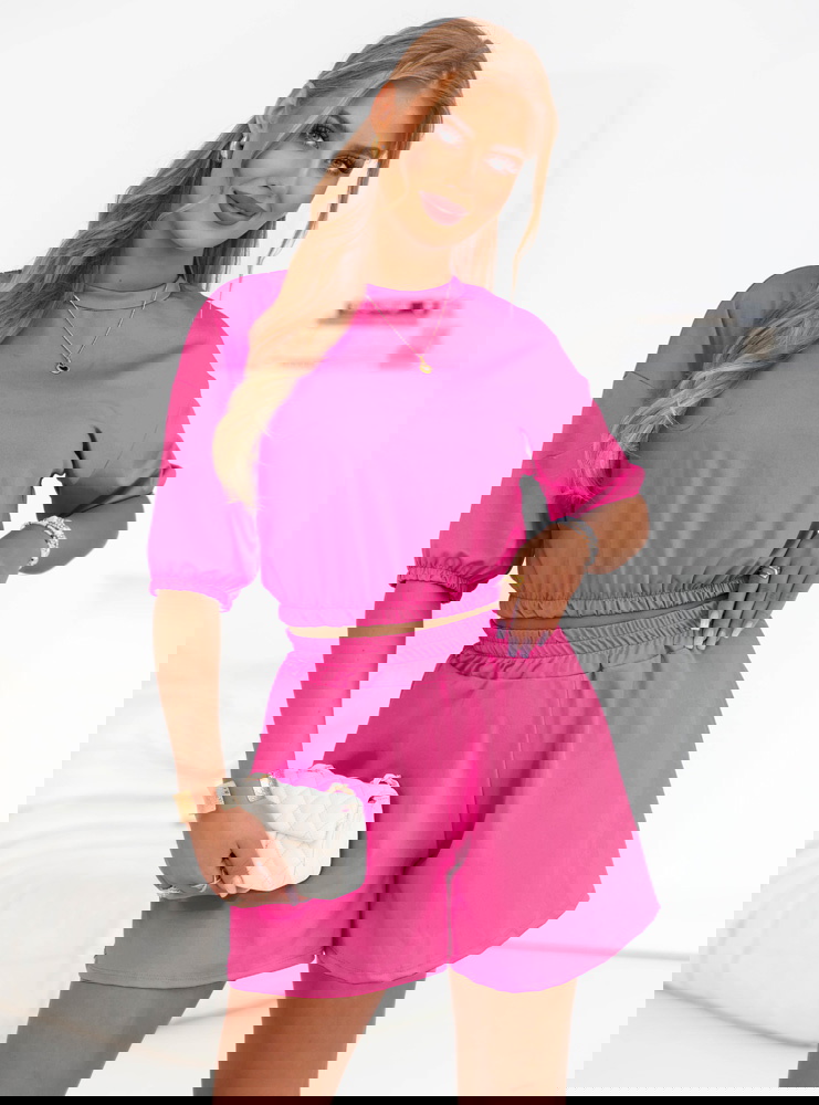 Różowy komplet bluzka i spodenki Edythe