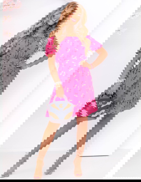 Różowa sukienka mini typu hiszpanka Melena o sukienka, która łączy klasyczny krój z wyjątkowym wzorem, który nadaje jej charakteru. Niezobowiązująca, dziewczęca i stylowa – taka właśnie jest.