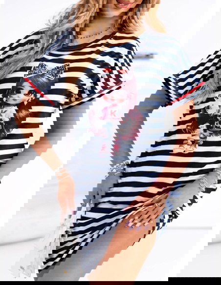 Sukienka mini z ozdobnym nadrukiem Blyana - wzór 2 to propozycja, która od razu przyciąga wzrok i wprowadza do stylizacji nutę dziewczęcego uroku. Jej swobodny krój daje pełen komfort noszenia, a jednocześnie podkreśla atuty sylwetki. Wyraziste, poziome paski dodają jej charakteru i świetnie komponują się z ozdobnym nadrukiem, który nadaje całości lekkości i zabawy. To sukienka, która sprawdzi się idealnie, gdy chcesz poczuć się modnie, ale bez zbędnego wysiłku. Jest lekka, stylowa i bezpretensjonalna – dokładnie taka, jakiej potrzebujesz na co dzień. Łączy w sobie wygodę i modny design, dzięki czemu możesz śmiało sięgnąć po nią niezależnie od okazji. Stylizacja z tą sukienką zyskuje na świeżości i oryginalności, a jednocześnie pozostaje bardzo kobieca. To jeden z tych elementów garderoby, który nie wymaga wiele dodatków – sam w sobie robi wrażenie. Luźniejszy fason sprawia, że możesz czuć się swobodnie, niezależnie od sytuacji. Ta sukienka ma w sobie wszystko, co potrzebne, byś poczuła się świetnie – codziennie!