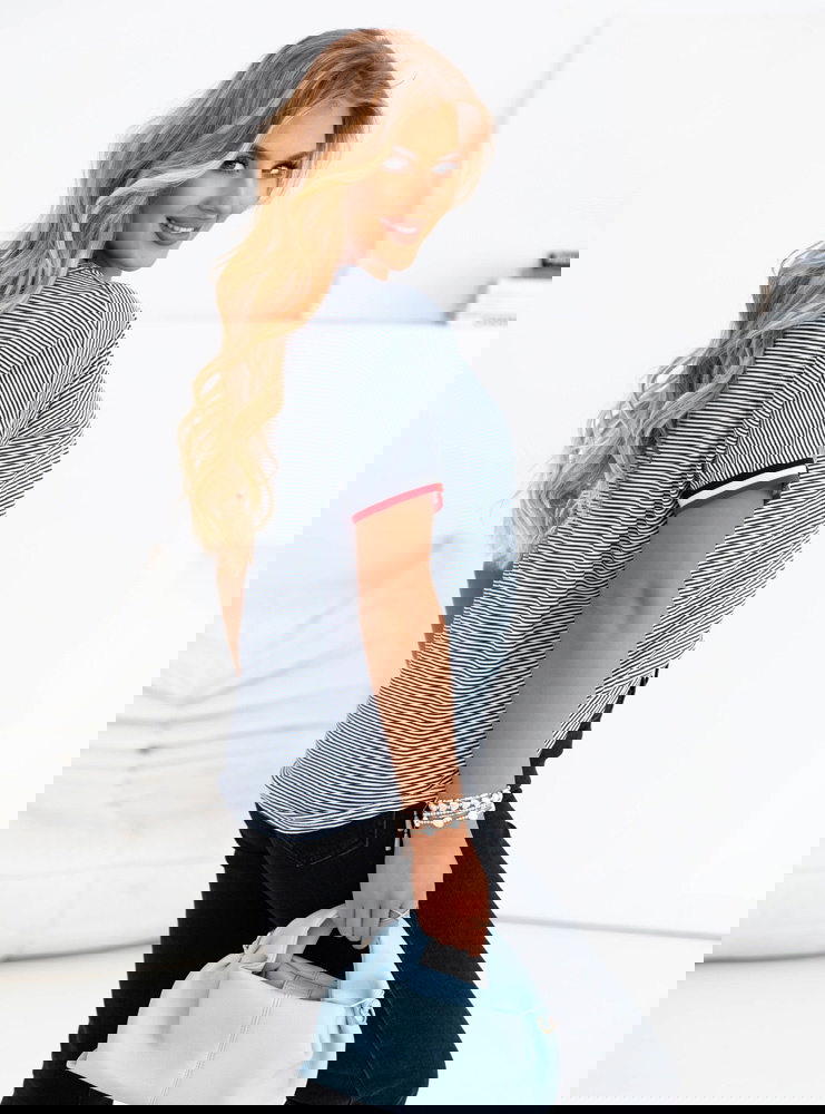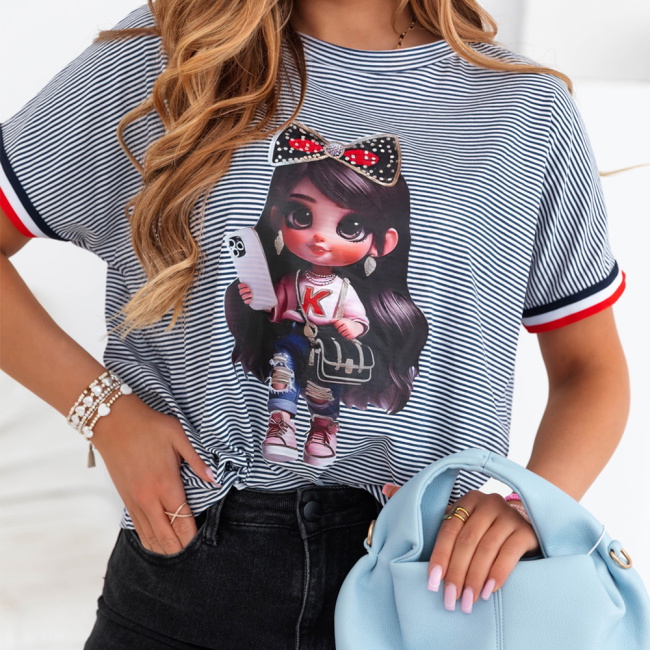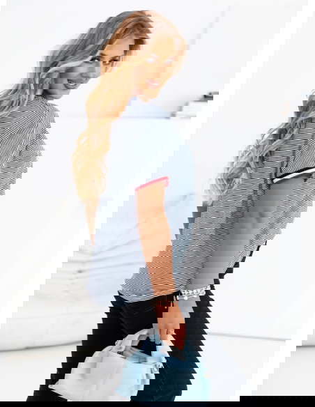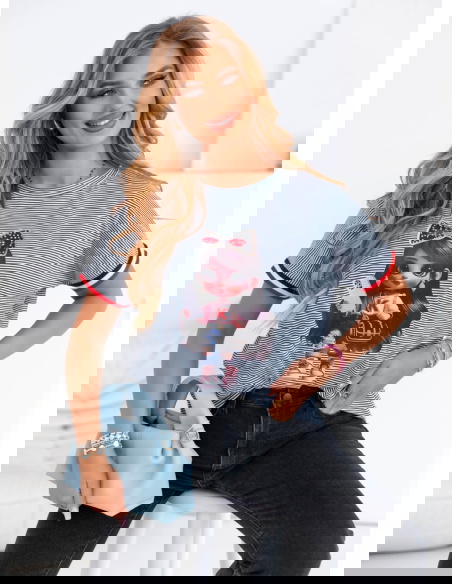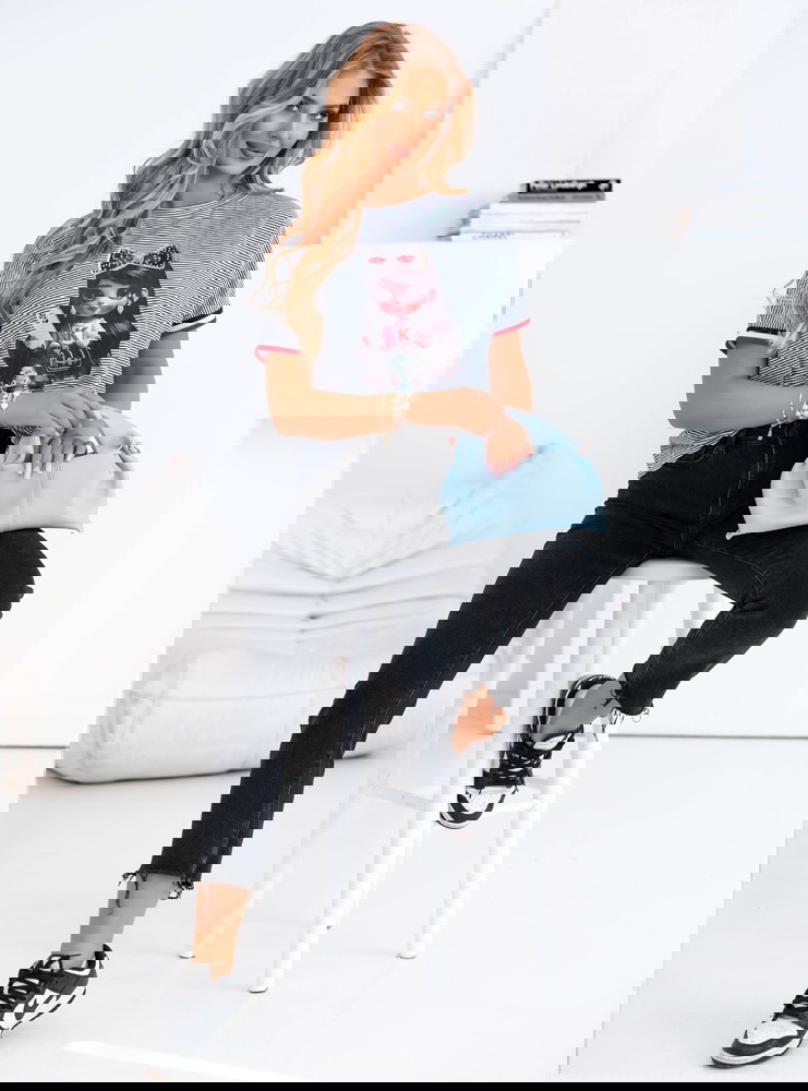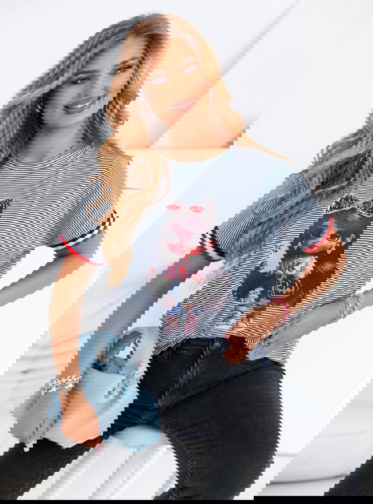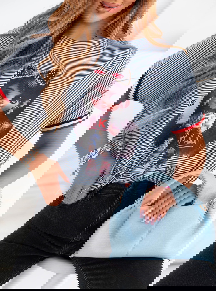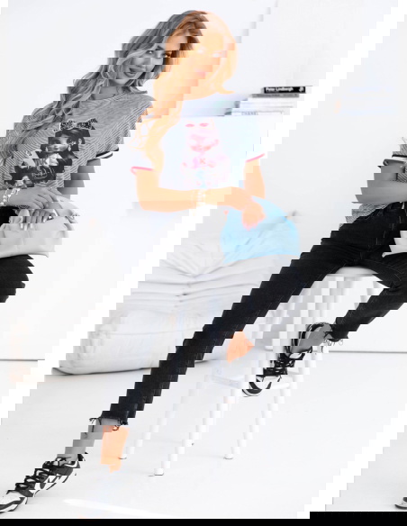 Koszulka z ozdobnym nadrukiem Luissa - wzór 2 to idealna propozycja dla kobiet, które lubią modę z charakterem. To połączenie miejskiego stylu z nutą dziewczęcej swobody, które z łatwością wpisuje się w codzienne stylizacje. Jej luźny fason gwarantuje komfort noszenia przez cały dzień, a jednocześnie świetnie prezentuje się zarówno z jeansami, jak i szortami czy spódnicą. Ozdobny nadruk dodaje całości wyrazistości i sprawia, że nie potrzebujesz wielu dodatków, by wyglądać stylowo. Cienkie paski w tle przełamują monotonię i dodają lekkości, a kontrastowe wykończenia przy rękawkach wprowadzają nutę sportowej energii. To koszulka, którą z powodzeniem założysz do pracy w casualowym stylu, na uczelnię czy na popołudniowe wyjście z przyjaciółmi. Możesz ją włożyć do środka spodni, związać na supeł lub nosić luźno – za każdym razem stworzy ciekawą bazę stylizacji. Jest wygodna, efektowna i bardzo „na luzie” – dokładnie taka, jakiej potrzebujesz, gdy nie chcesz rezygnować z wygody, ale wciąż zależy Ci na modnym wyglądzie. To ubranie, które nie tylko wygląda dobrze, ale też daje przyjemność z noszenia.