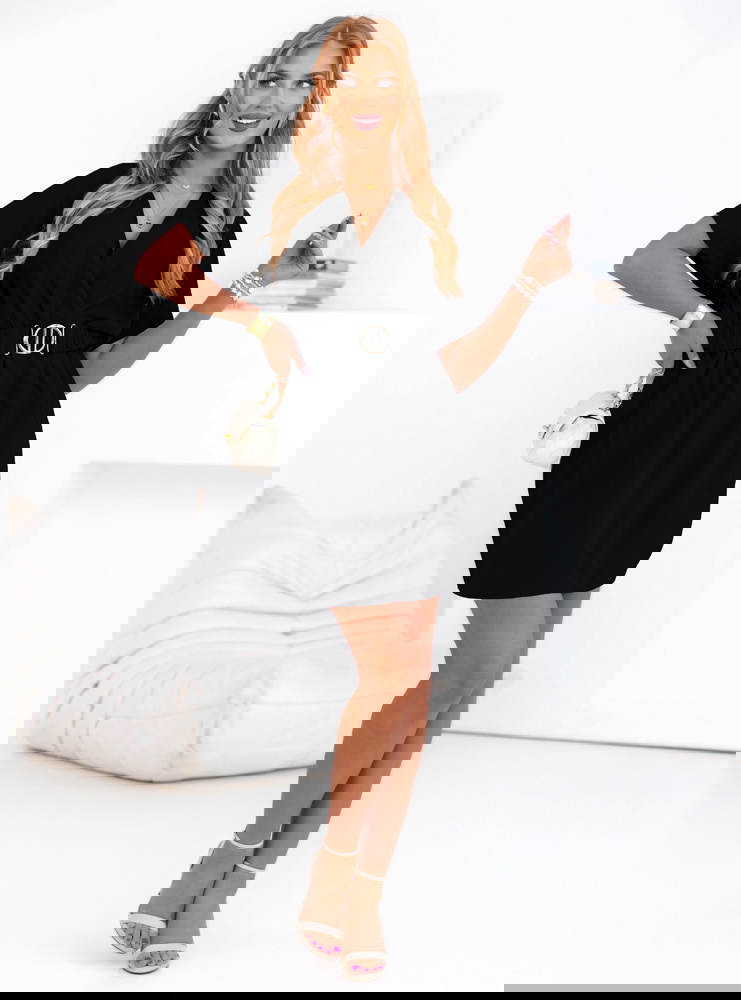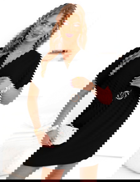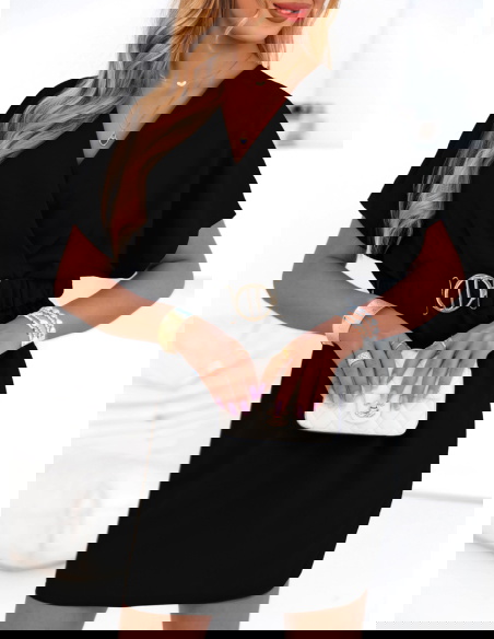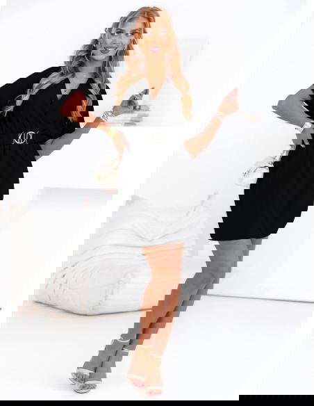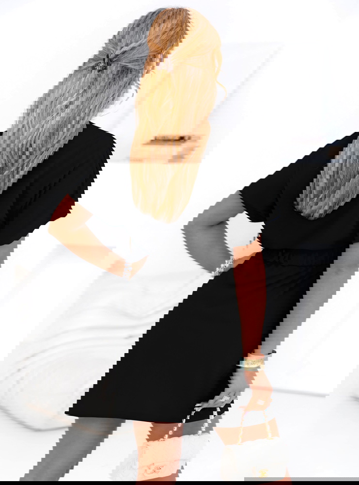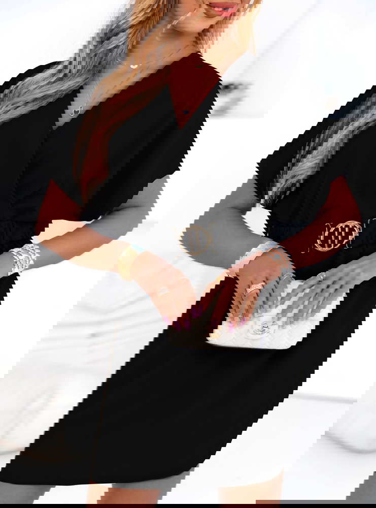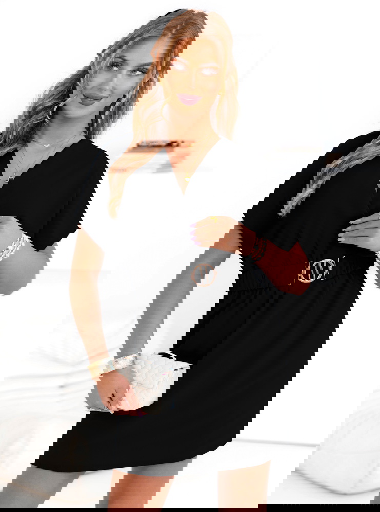 Czarna sukienka mini z przekładanym dekoltem Arvella to idealna propozycja dla kobiet, które cenią sobie styl, wygodę i ponadczasową elegancję. To ten typ sukienki, która wygląda świetnie zarówno w wersji dziennej, jak i wieczorowej. Klasyczna czerń to zawsze dobry wybór – optycznie wyszczupla, pasuje do wszystkiego i nigdy nie wychodzi z mody. Przekładany dekolt pięknie podkreśla linię szyi i dekoltu, dodając całości subtelnej kobiecości. Sukienka ma prosty, ale efektowny krój, który delikatnie otula sylwetkę, a jednocześnie pozwala poczuć się swobodnie. W talii znajduje się pasek z ozdobną klamrą, który zaznacza proporcje i dodaje charakteru całej stylizacji. To doskonały wybór na wiele okazji – nie wymaga wielu dodatków, by prezentować się wyjątkowo. Krótsza długość dodaje lekkości i sprawia, że całość wygląda nowocześnie i świeżo. Wystarczy dodać szpilki i ulubioną torebkę – i jesteś gotowa na wyjście.