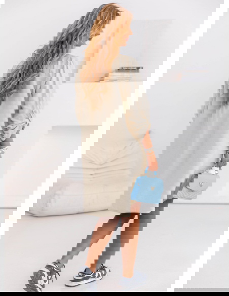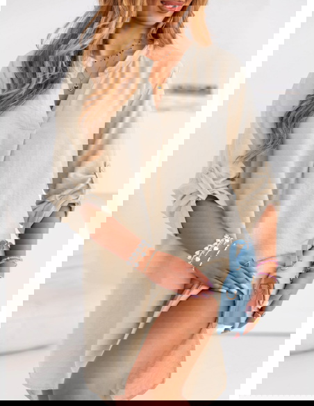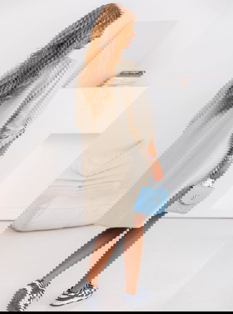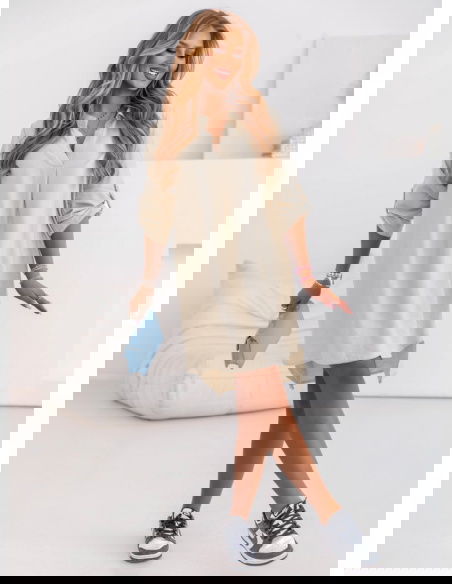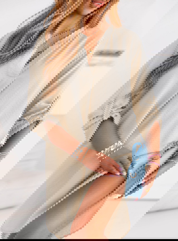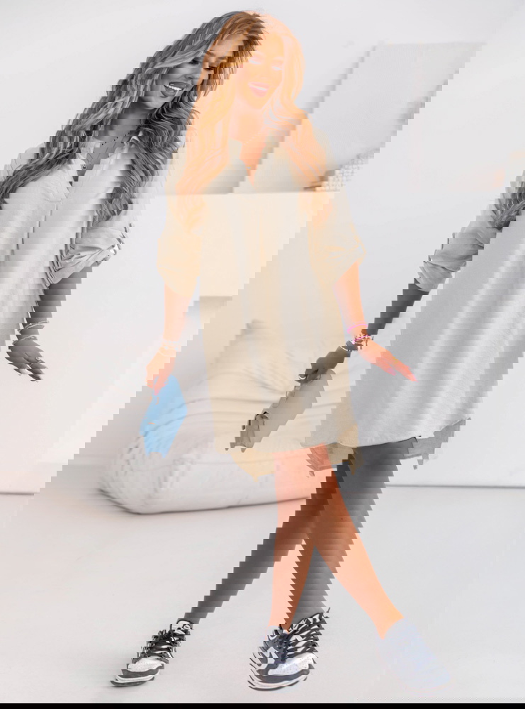Beżowa sukienka koszulowa oversize Breezy to uniwersalny element garderoby, który pokochasz za jej wygodę i prostotę. Stylowa, praktyczna i zawsze na czasie – będzie doskonałym wyborem dla każdej kobiety, która ceni komfort i naturalny, swobodny look.
