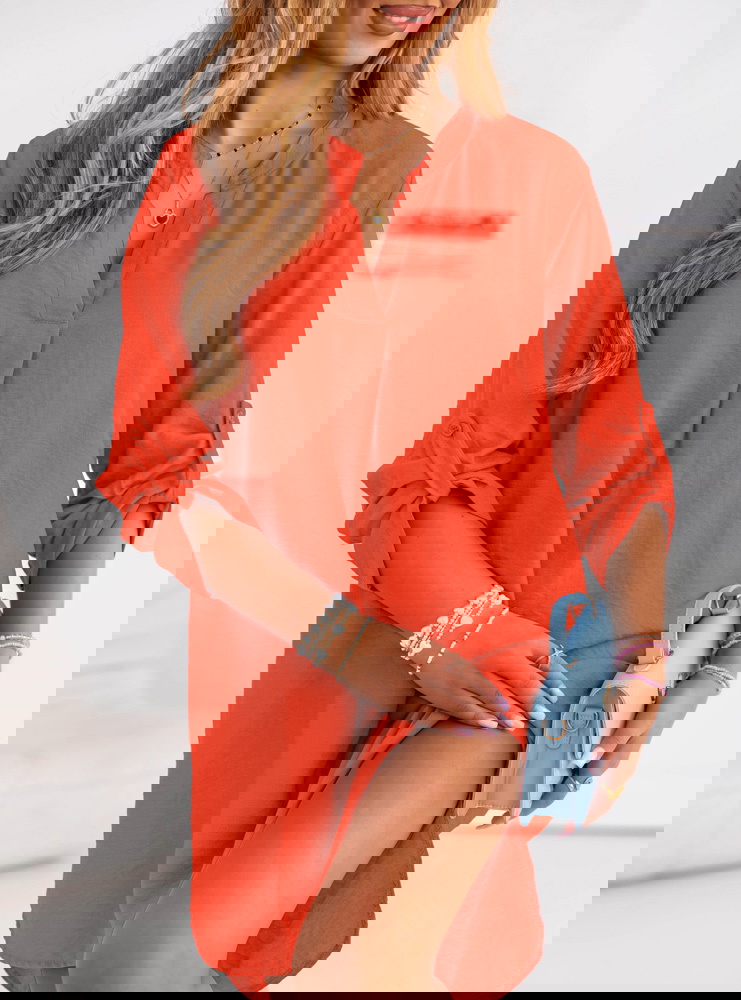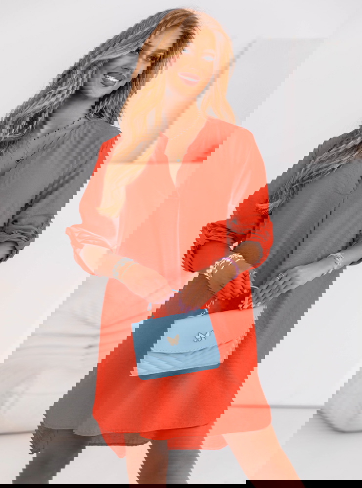 Pomarańczowa sukienka koszulowa oversize Breezy będzie świetnym wyborem. Stylowa, lekka i pełna energii – idealna dla kobiet, które cenią luz i kolor.