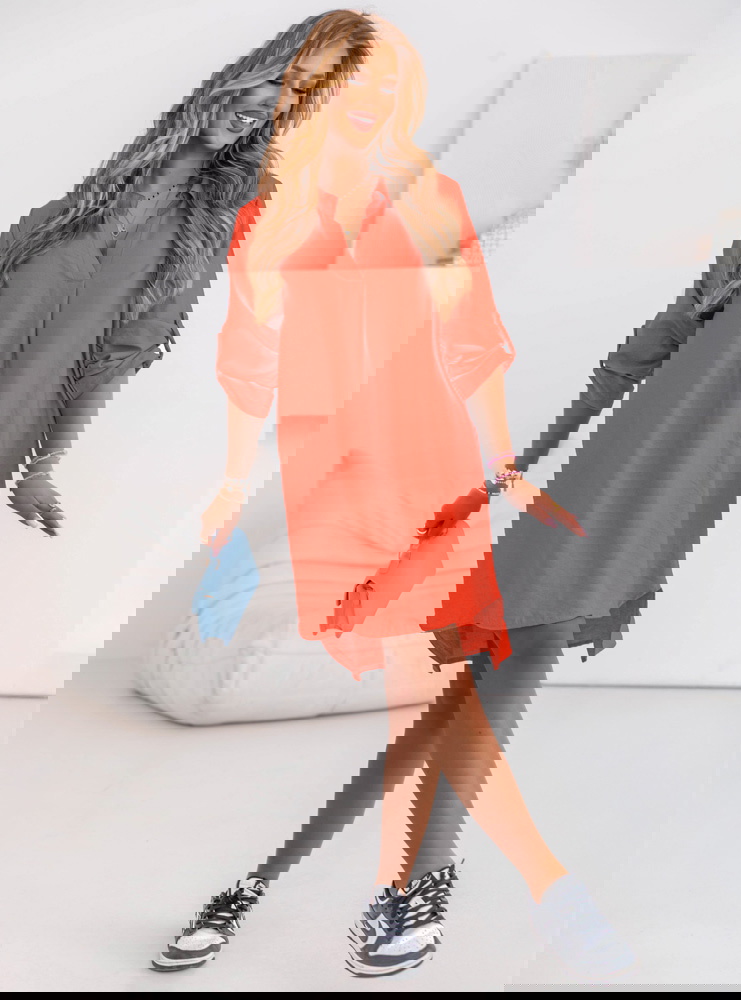 Pomarańczowa sukienka koszulowa oversize Breezy