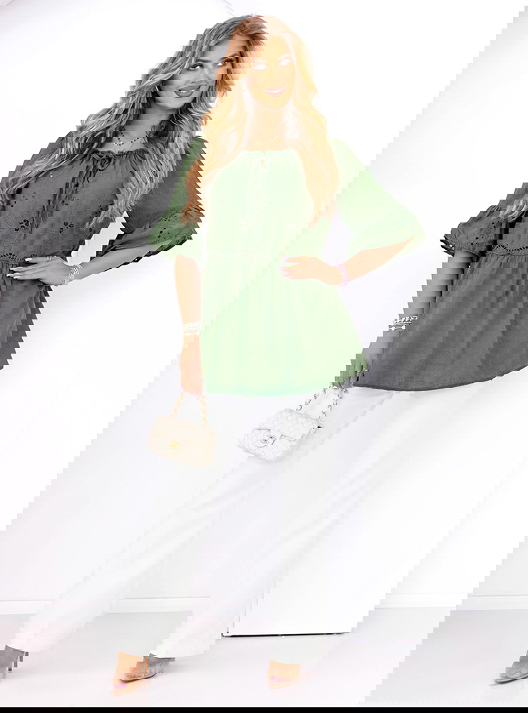 Ażurowa bluzka z wiązaniem Erdine - khaki sprawdzi się idealnie na co dzień – do pracy, na spotkania, spacer, zakupy czy rodzinny obiad. Świetna również na weekendowe wyjazdy, urlop i wszystkie sytuacje, w których chcesz wyglądać dobrze, ale czuć się komfortowo.