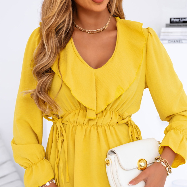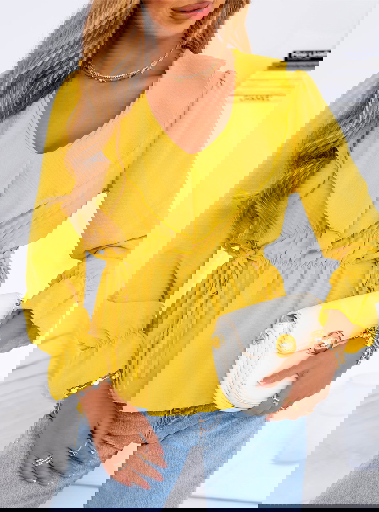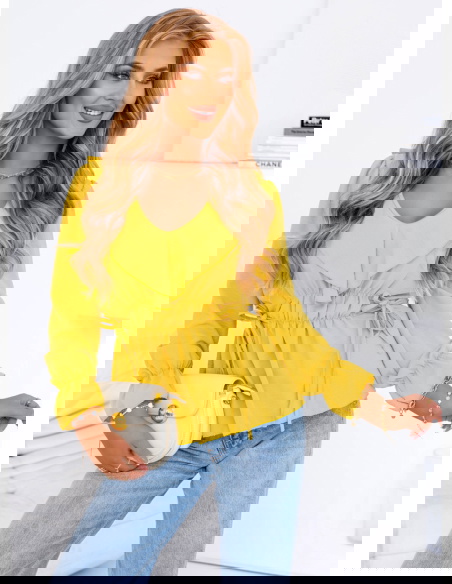 Żółta bluzka z żabotem Kaminna