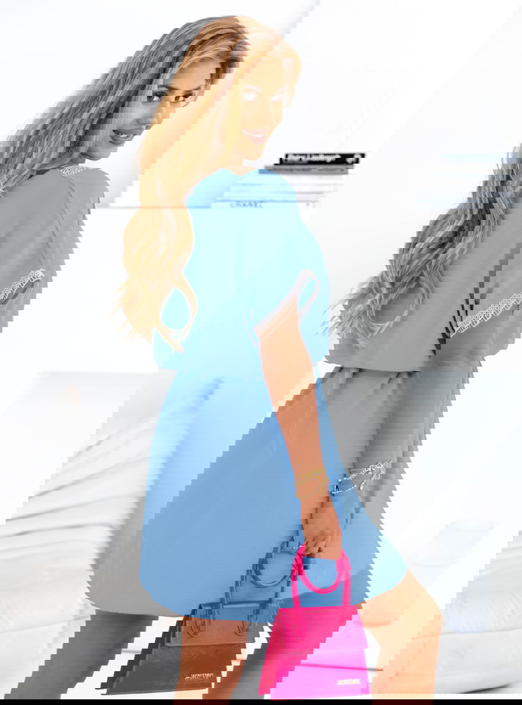 Błękitna sukienka mini z koronką Mevelyn to model, który podkreśla urodę i dodaje uroku. Idealny wybór dla kobiet, które cenią wygodę bez rezygnacji z modnego wyglądu. Załóż ją i poczuj się pewnie – bez względu na okazję.