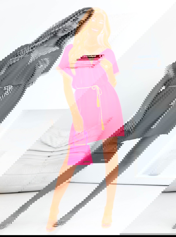 Różowa sukienka mini z koronką Mevelyn to prawdziwy must-have w kobiecej garderobie. Od razu przyciąga uwagę intensywnym, energetycznym kolorem, który dodaje świeżości i radości każdej stylizacji. To model, który pokochasz za jego lekkość, wygodę i kobiecy charakter. Świetnie sprawdzi się zarówno latem, jak i podczas cieplejszych dni przez cały rok. Krój mini eksponuje nogi, a delikatne koronki przy dekolcie i rękawach nadają sukience romantycznego wdzięku. Wiązanie w talii pozwala dopasować ją do sylwetki i podkreślić kobiece kształty. Sukienka jest jednocześnie dziewczęca i bardzo stylowa – idealna dla kobiet, które lubią wyglądać modnie, ale nieprzesadnie. Możesz ją łączyć zarówno z delikatnymi dodatkami, jak i odważnymi akcentami kolorystycznymi. To model, który świetnie wpisuje się w miejskie i wakacyjne klimaty. Jeśli szukasz sukienki, która sprawi, że poczujesz się pięknie i lekko – właśnie ją znalazłaś.