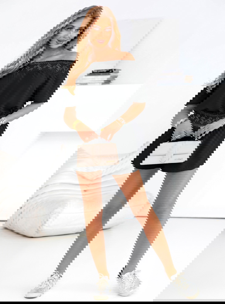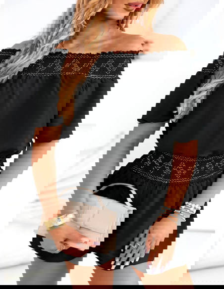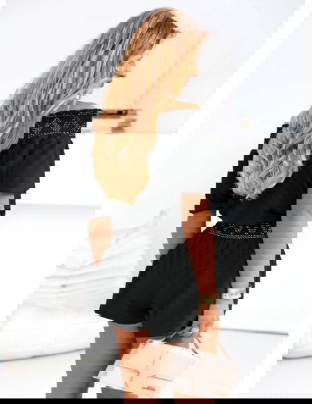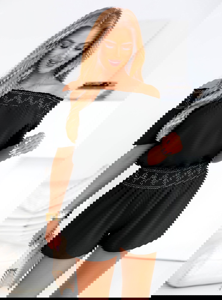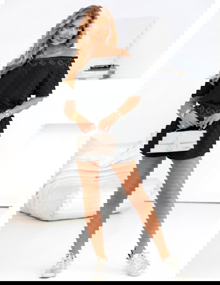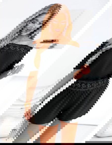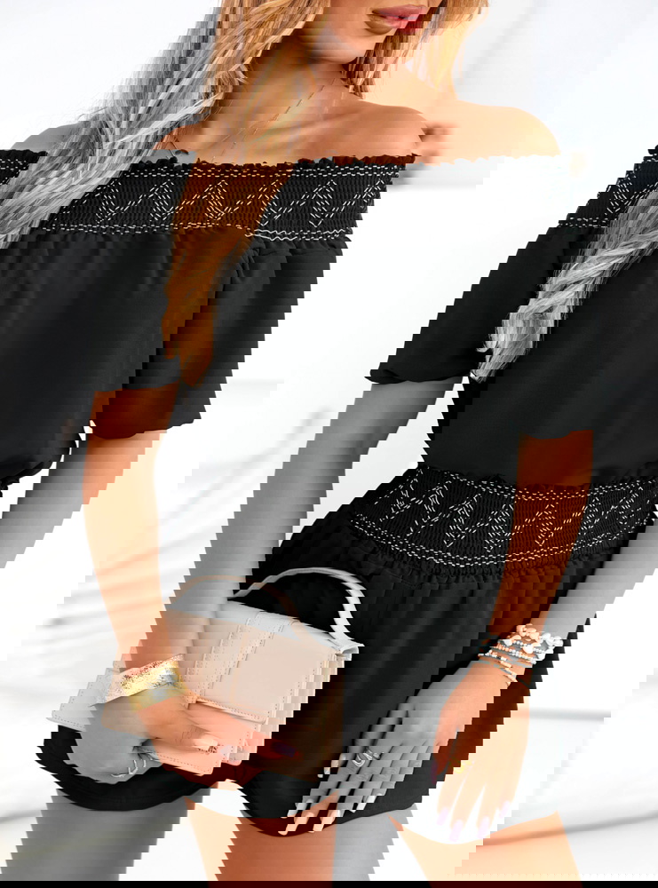Czarny komplet bluzka typu hiszpanka i spodenki Teressita