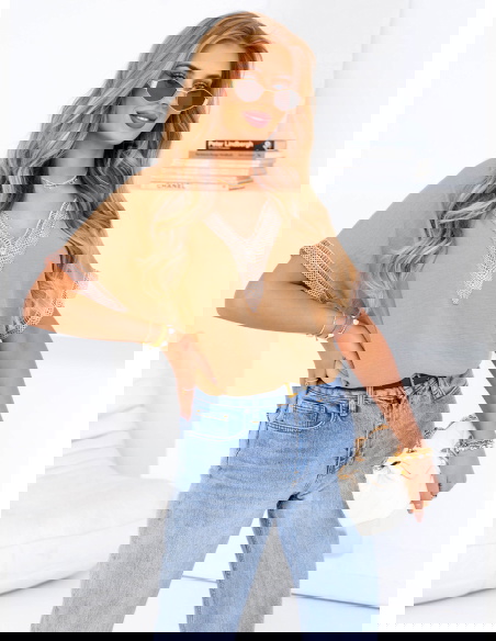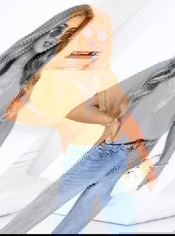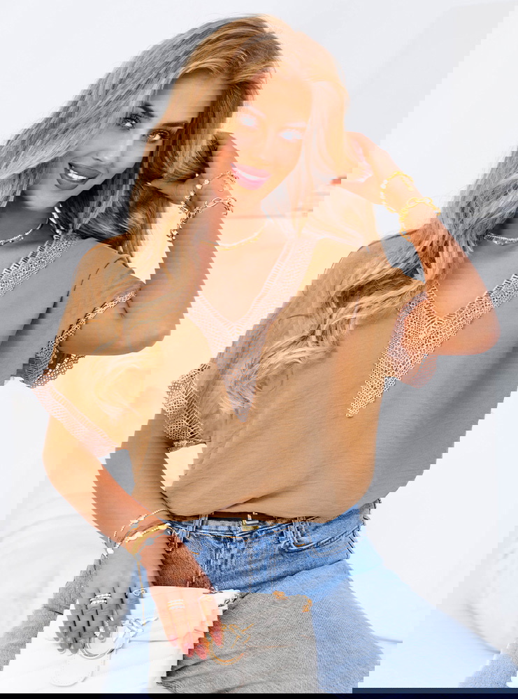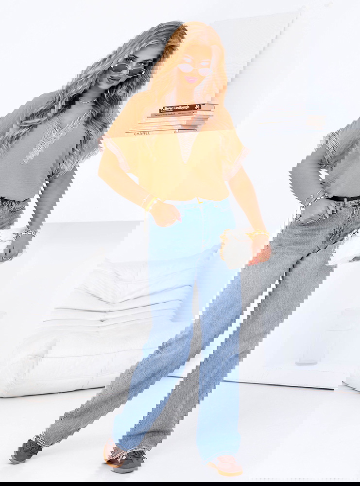 Bluzka z dekoltem w serek Naliciia - mocha mousse to idealne połączenie klasy, luzu i kobiecego uroku. Jej neutralny, karmelowy odcień pięknie komponuje się z wieloma innymi kolorami, co czyni ją wyjątkowo uniwersalnym elementem garderoby. Dekolt w serek wysmukla szyję i optycznie wydłuża sylwetkę, a delikatne, ażurowe wykończenie dodaje elegancji. To bluzka, która wygląda dobrze zarówno w codziennych, jak i bardziej dopracowanych stylizacjach. Jej krój jest luźny, ale niepozbawiony kobiecego charakteru – podkreśla naturalny wdzięk bez skrępowania ruchów. Rękawki z ozdobnym obszyciem nadają całości subtelnego, letniego klimatu. Stylowa i wygodna – możesz nosić ją na wiele sposobów, zależnie od okazji. Z łatwością zestawisz ją z jeansami, szortami, spódnicą czy eleganckimi spodniami. To model, który nie wymaga wiele – wystarczy założyć i gotowe. Jeśli szukasz bluzki, która „robi całą stylizację”, to właśnie ją znalazłaś.