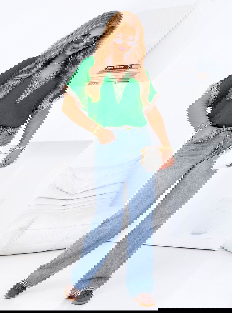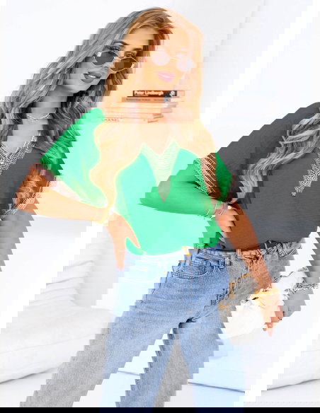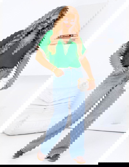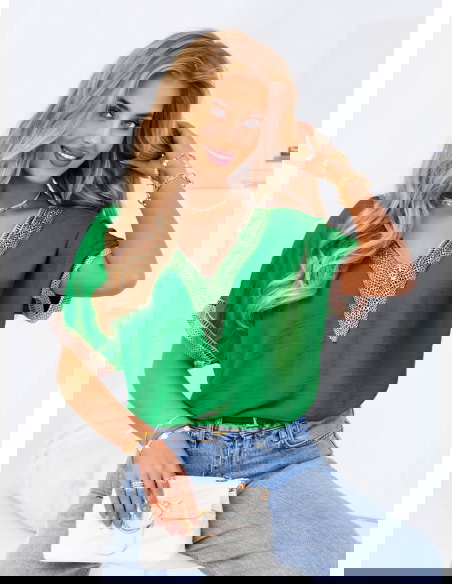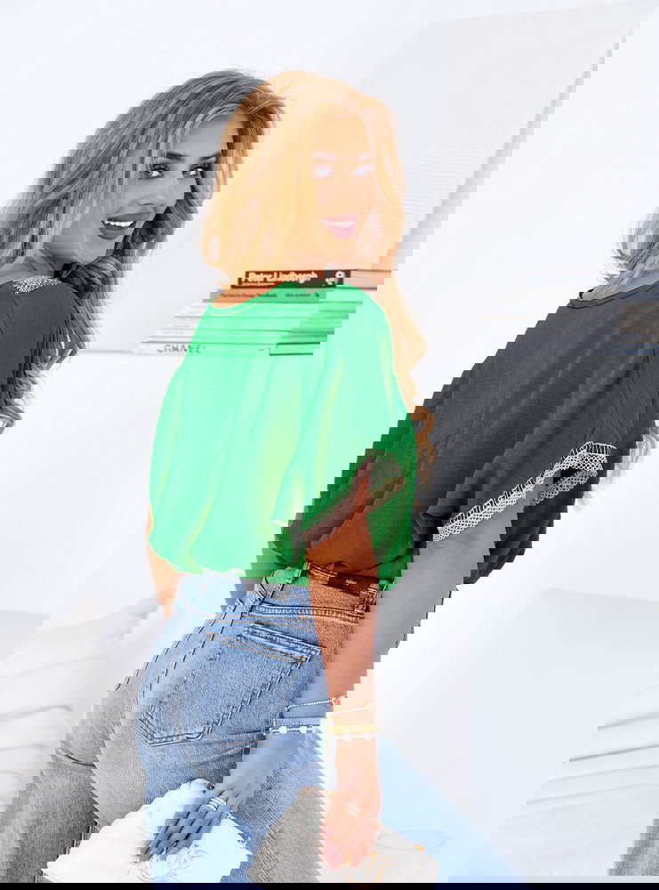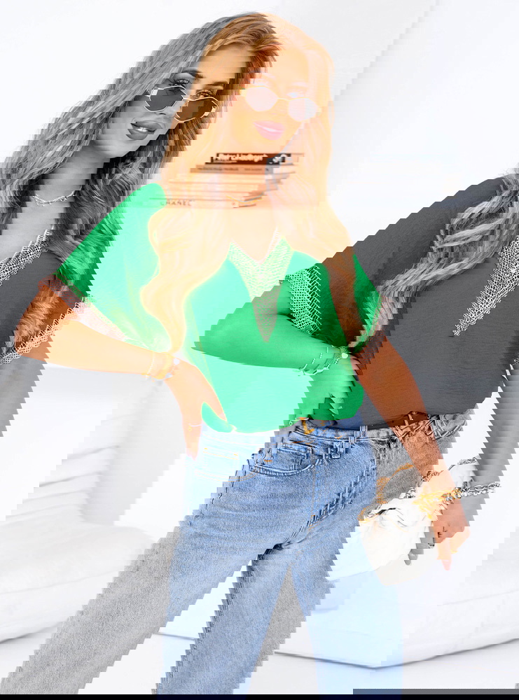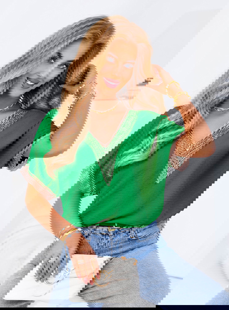 Bluzka z dekoltem w serek Naliciia - butelkowa zieleń to synonim wygody i stylu. To model, który pozwala stworzyć wiele różnych stylizacji – od casualowych po bardziej eleganckie.
