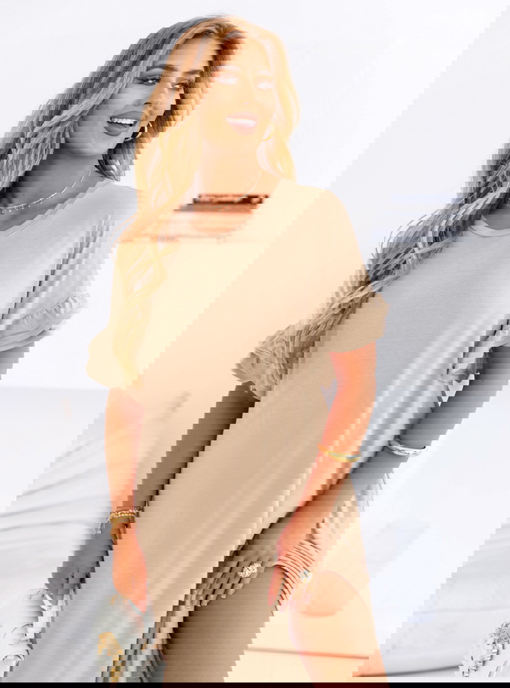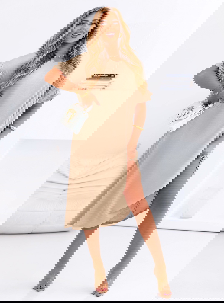 Beżowa sukienka oversize z falbanami na rękawach Julialy to sukienka idealna na codzienne wyjścia – do pracy, na zakupy, czy spotkania z bliskimi. Świetnie sprawdzi się również podczas podróży, dzięki wygodzie i łatwości stylizacji.