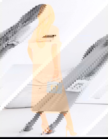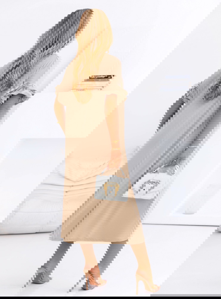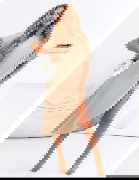 Beżowa sukienka oversize z falbanami na rękawach Julialy