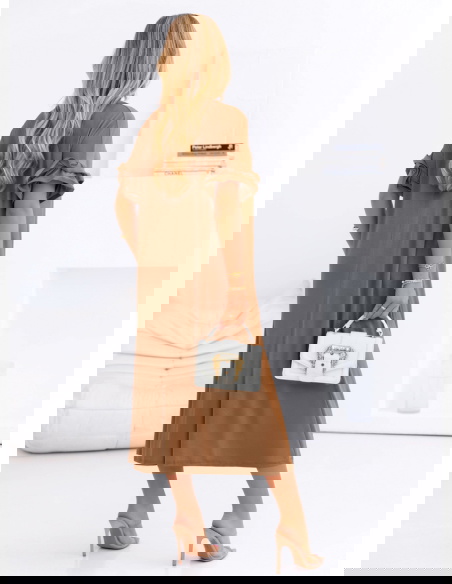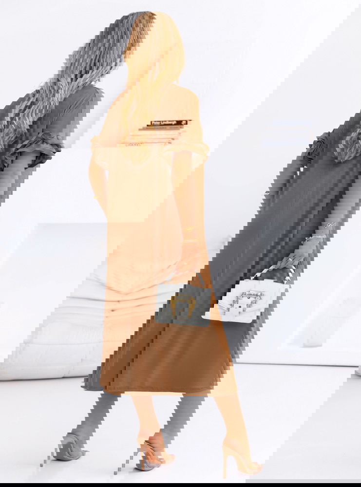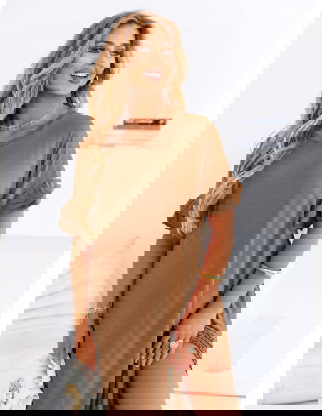 Sukienka oversize z falbanami na rękawach Julialy - mocha mousse to propozycja dla kobiet, które cenią sobie wygodę, styl i nowoczesny minimalizm. Jej luźny krój pozwala poczuć się swobodnie w każdej sytuacji, nie tracąc przy tym na kobiecości. Subtelny odcień mocha to ciepły, neutralny kolor, który pięknie współgra z każdym typem urody. Rękawy zakończone delikatnymi falbanami dodają całości lekkości i subtelnej elegancji. To sukienka, która nie potrzebuje wielu dodatków – sama w sobie prezentuje się wyjątkowo stylowo. Długość midi sprawia, że to doskonały wybór zarówno na co dzień, jak i na bardziej casualowe wyjścia. Jej prostota jest ogromnym atutem – możesz ją stylizować na wiele sposobów. Niezależnie od tego, czy założysz ją do sportowych butów, czy eleganckich sandałów, zawsze wygląda dobrze. To model, który szybko stanie się Twoim ulubieńcem w szafie. Jeśli szukasz komfortu bez kompromisów – właśnie ją znalazłaś.