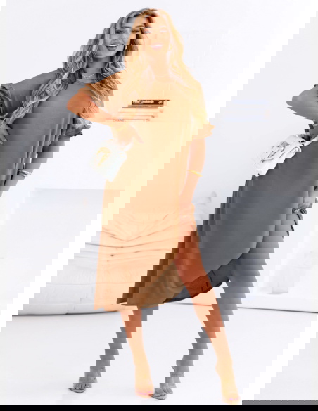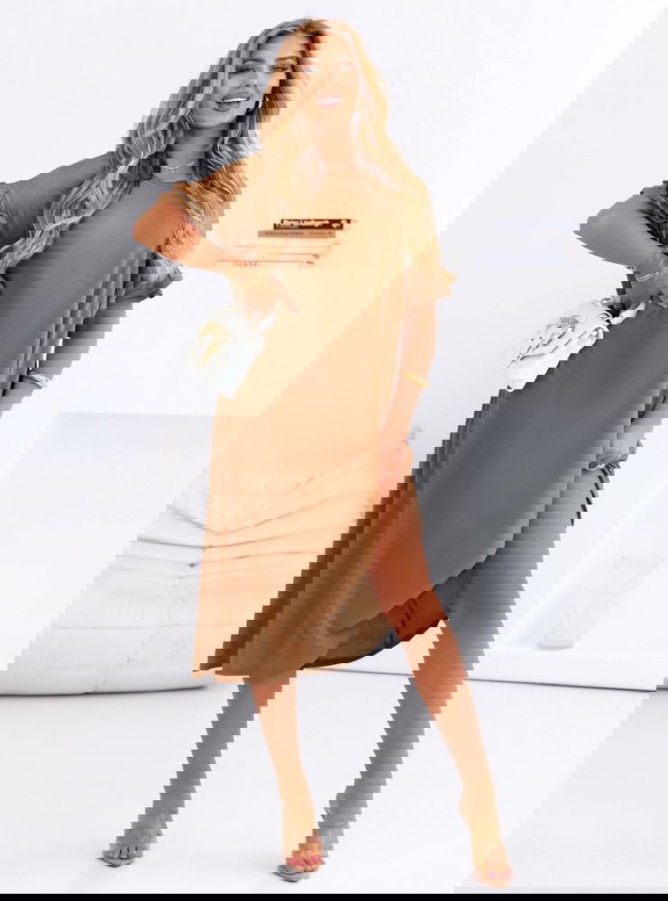 Sukienka oversize z falbanami na rękawach Julialy - mocha mousse to idealna sukienka na codzienne sytuacje – do pracy, na zakupy, czy na spacer. Świetnie sprawdzi się podczas podróży, weekendowych wyjazdów i luźnych spotkań ze znajomymi.
