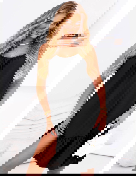 Czarna sukienka z wiązanymi ramiączkami Aneliia to klasyka, która nigdy nie wychodzi z mody. Prosty, lekko rozszerzany krój sprawia, że jest wygodna, przewiewna i niezwykle uniwersalna. To jeden z tych modeli, który możesz założyć w kilka chwil i zawsze wyglądać dobrze – niezależnie od okazji. Czarna baza daje ogromne możliwości stylizacyjne i pasuje do wszystkiego. Ramiączka do wiązania dodają sukience dziewczęcego uroku i pozwalają dopasować ją do swojej sylwetki i preferencji. Delikatne marszczenie przy dekolcie oraz falbana u dołu nadają całości lekkości i stylowego luzu. Sukienka pięknie prezentuje się w ruchu i sprawia, że czujesz się swobodnie, a jednocześnie kobieco. Świetnie wygląda zarówno z eleganckimi dodatkami, jak i w wersji typowo casualowej. To idealny wybór na lato, wakacje, ale i na miejskie dni, kiedy liczy się komfort i styl. Jeśli szukasz czegoś „na szybko”, ale z efektem wow – ten model to strzał w dziesiątkę.