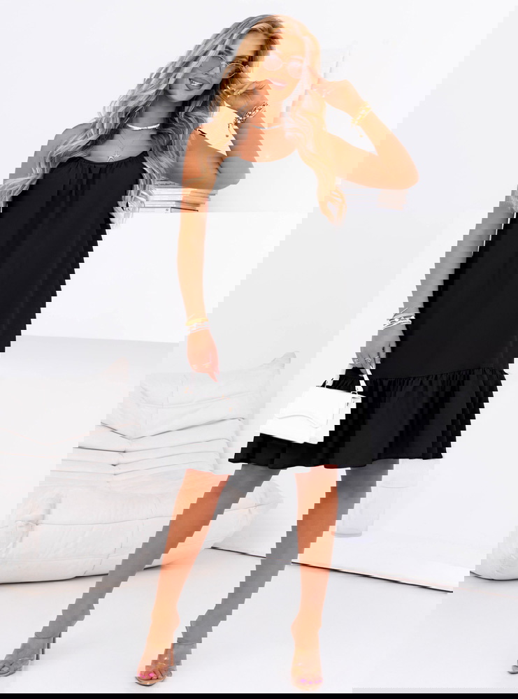 Czarna sukienka z wiązanymi ramiączkami Aneliia