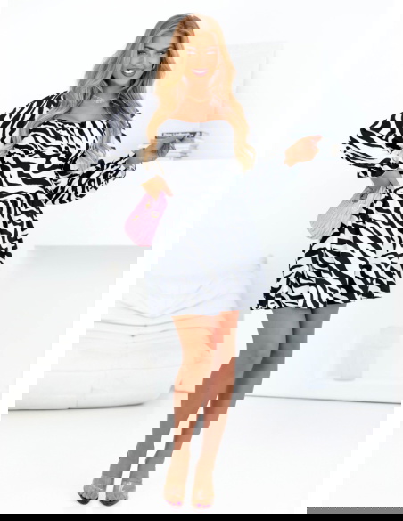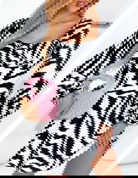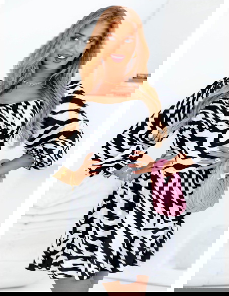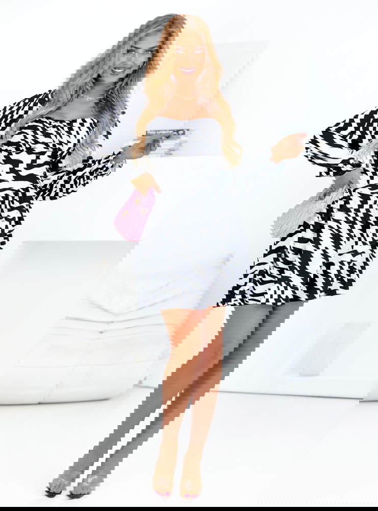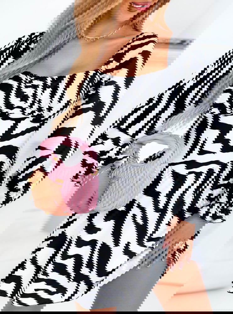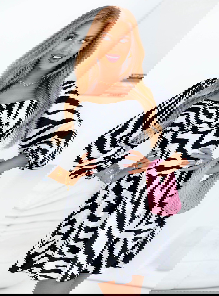 Sukienka mini z bufiastymi rękawami Joseli - wzór 1 to wyjątkowy model, który łączy w sobie odwagę, styl i kobiecy charakter. Print w zebrę dodaje jej wyrazistości, a fason pięknie podkreśla atuty sylwetki.