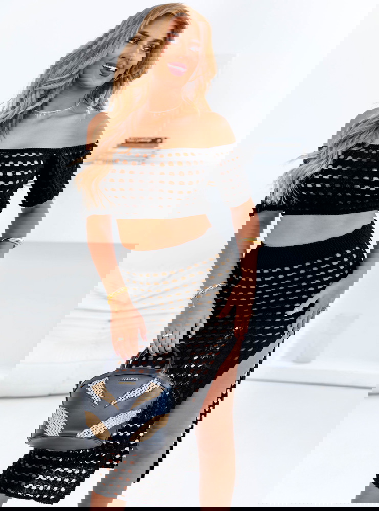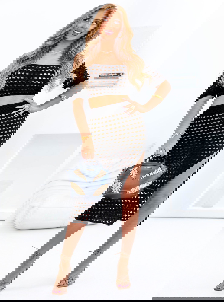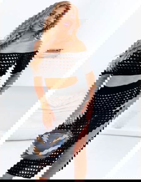 Czarny komplet ażurowy top+spódnica Werilla