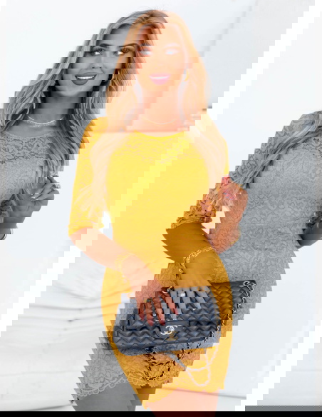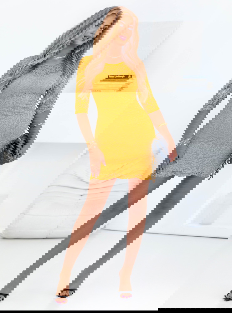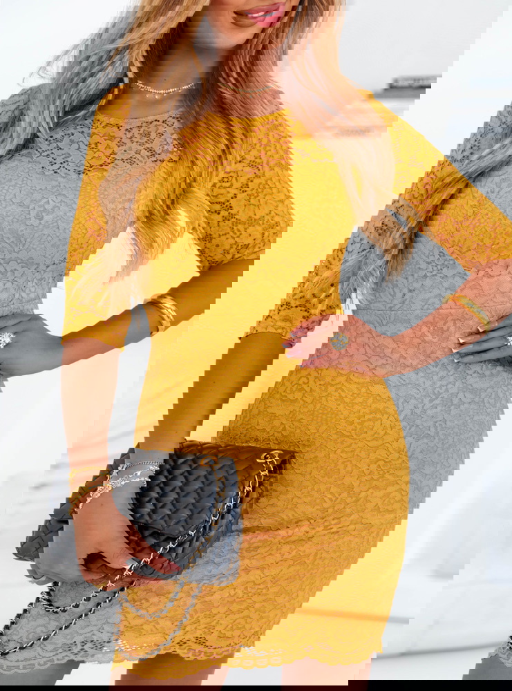 Miodowa koronkowa sukienka Nallia to połączenie klasycznej elegancji z modnym, ciepłym odcieniem, który przyciąga spojrzenia. Jej dopasowany krój pięknie podkreśla kobiecą sylwetkę, zapewniając jednocześnie komfort noszenia. Całość została wykonana z delikatnej koronki, która dodaje romantyzmu i subtelnego uroku. Kolor miodowy to doskonała alternatywa dla klasycznych barw – pasuje do wielu typów urody i świetnie prezentuje się o każdej porze roku. Sukienka posiada rękawy ¾ i zabudowany dekolt, co nadaje jej szyku i czyni ją idealną również na bardziej formalne okazje. Eleganckie koronkowe wykończenia przy dekolcie i u dołu sukienki dodają jej lekkości i klasy. To model, który nie wymaga wielu dodatków – sam w sobie robi wrażenie. Świetnie sprawdzi się na ważne wyjście, romantyczną kolację czy uroczystość rodzinną. Jeśli szukasz kreacji kobiecej, eleganckiej i nietuzinkowej – ta sukienka to idealny wybór.