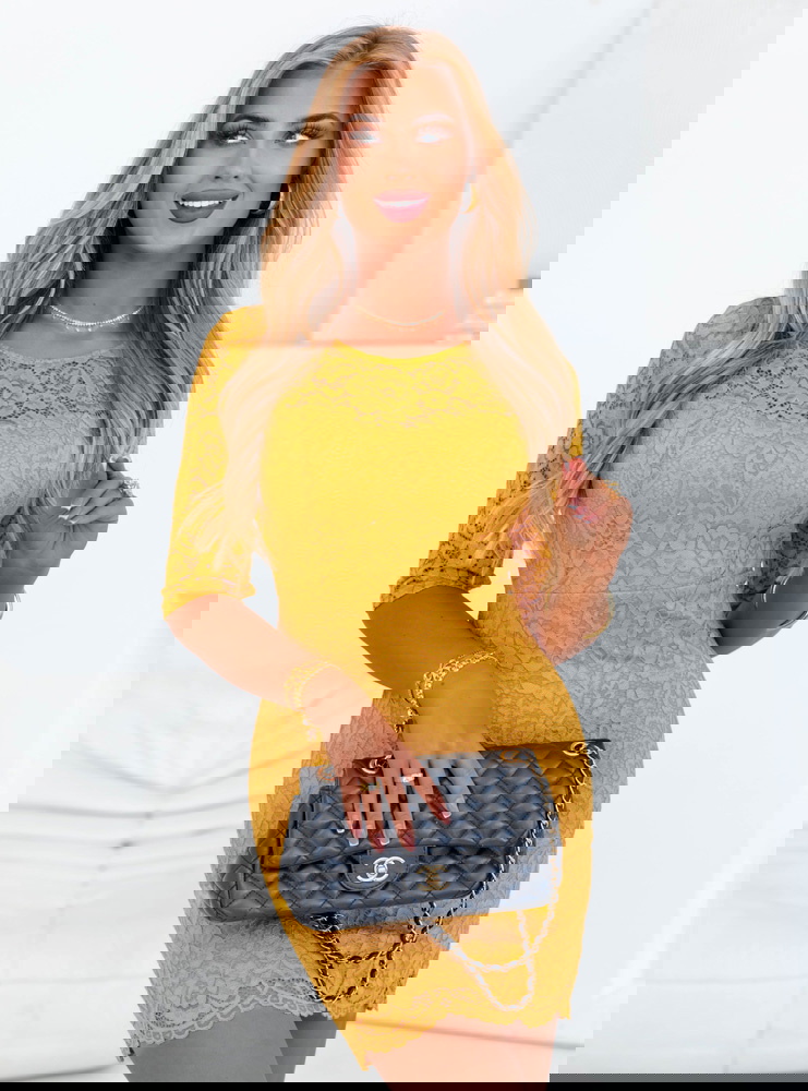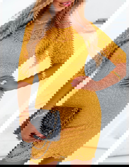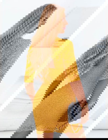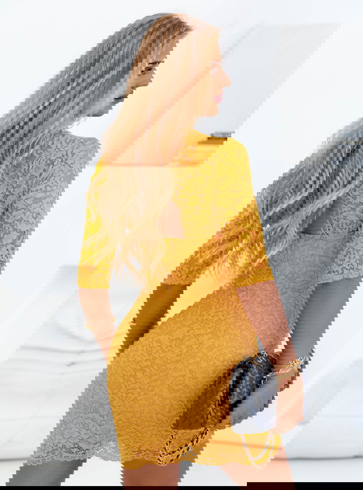 Miodowa koronkowa sukienka Nallia to kobiecy i stylowy wybór, który pozwoli Ci wyróżnić się w tłumie. Jej ciepły kolor, klasyczny krój i romantyczna koronka tworzą połączenie, które sprawdza się niezależnie od okazji.