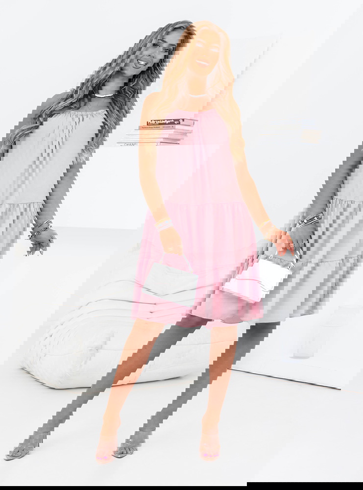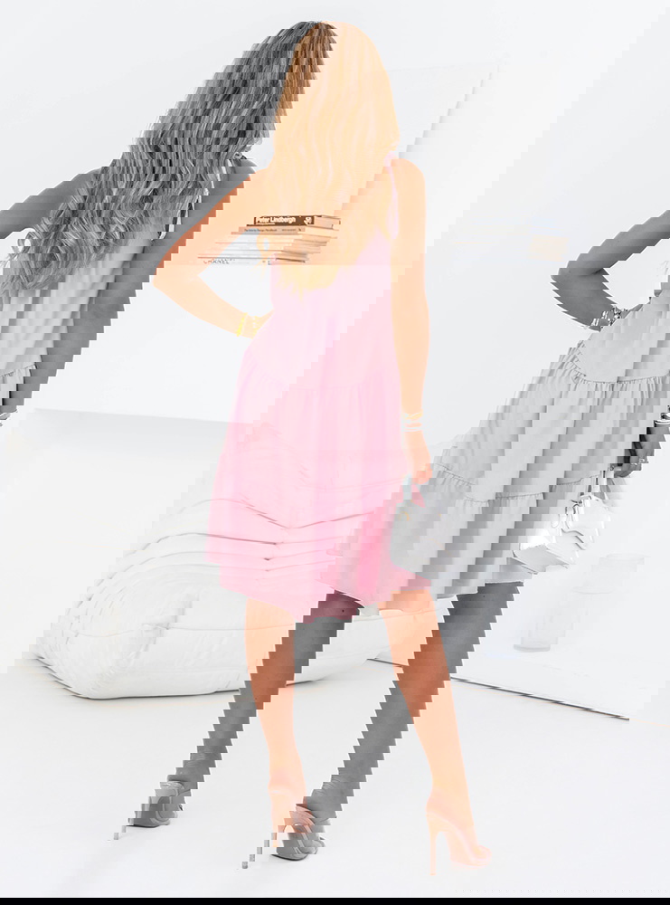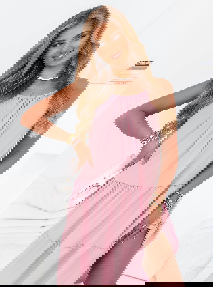 Pudrowa sukienka midi na ramiączkach Camicie to propozycja dla kobiet, które kochają subtelność, wygodę i kobiecy styl w lekkim wydaniu. Jej delikatny, pudrowo-różowy odcień idealnie podkreśla letnią opaleniznę i nadaje całej stylizacji romantycznego charakteru. Sukienka została zaprojektowana z myślą o wygodzie i swobodzie ruchów – jej luźny krój pięknie układa się na sylwetce, tworząc miękką, lekką linię. Regulowane ramiączka i delikatne marszczenie na dekolcie dodają jej uroku i pozwalają dopasować sukienkę do własnych potrzeb. Długość midi sprawia, że sukienka wygląda niezwykle dziewczęco i pasuje na wiele różnych okazji. To model, który nie wymaga skomplikowanych stylizacji – wystarczy kilka dodatków, aby wyglądać olśniewająco. Pudrowy kolor oraz lekki, falbaniasty dół sprawiają, że całość prezentuje się niezwykle świeżo i lekko. To sukienka, w której poczujesz się pięknie, komfortowo i kobieco. Idealna na lato – na każdą okazję, kiedy chcesz wyglądać stylowo, ale bez wysiłku.
