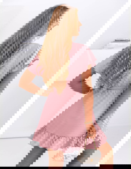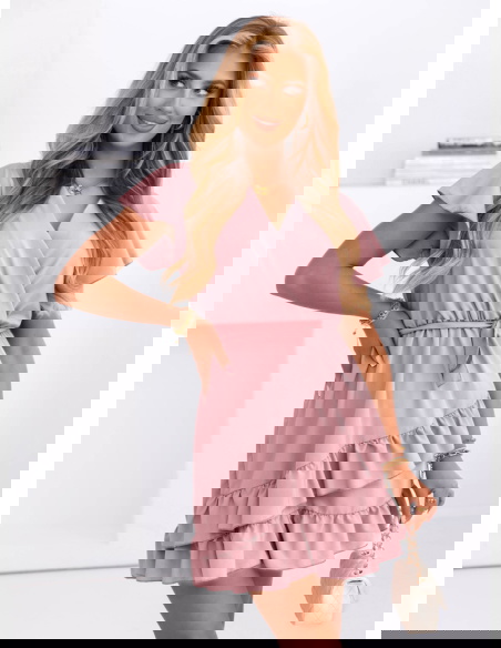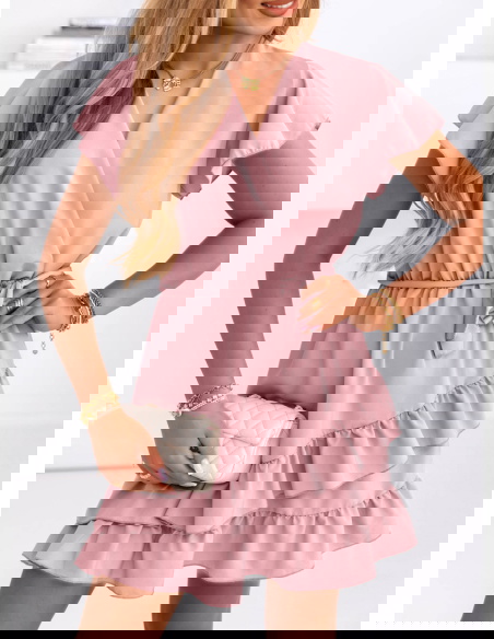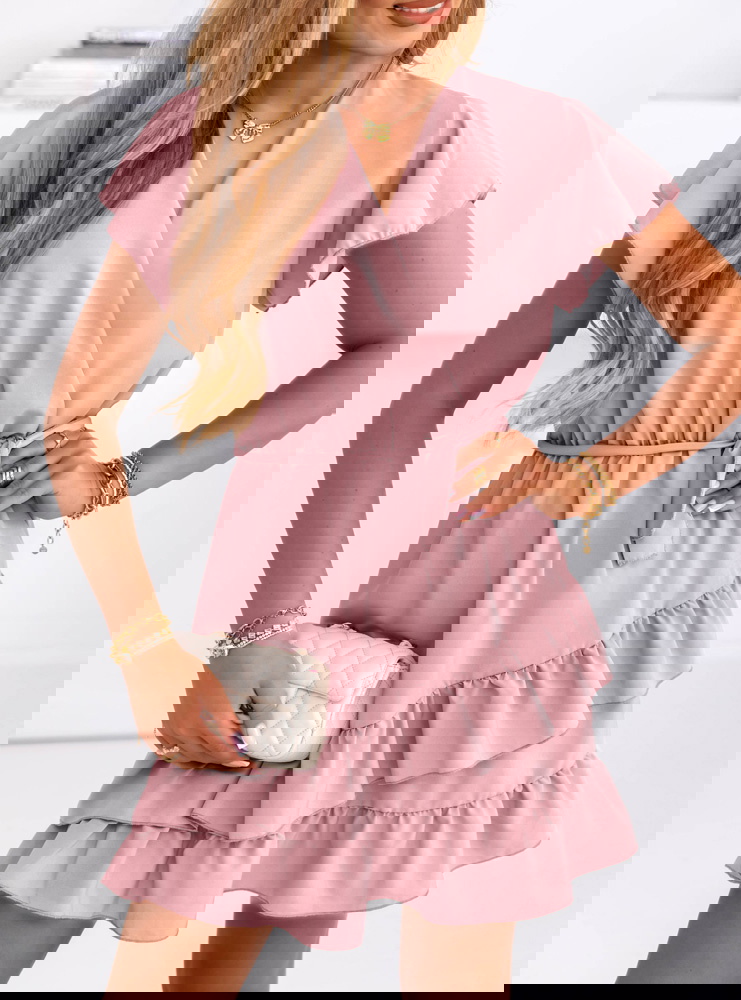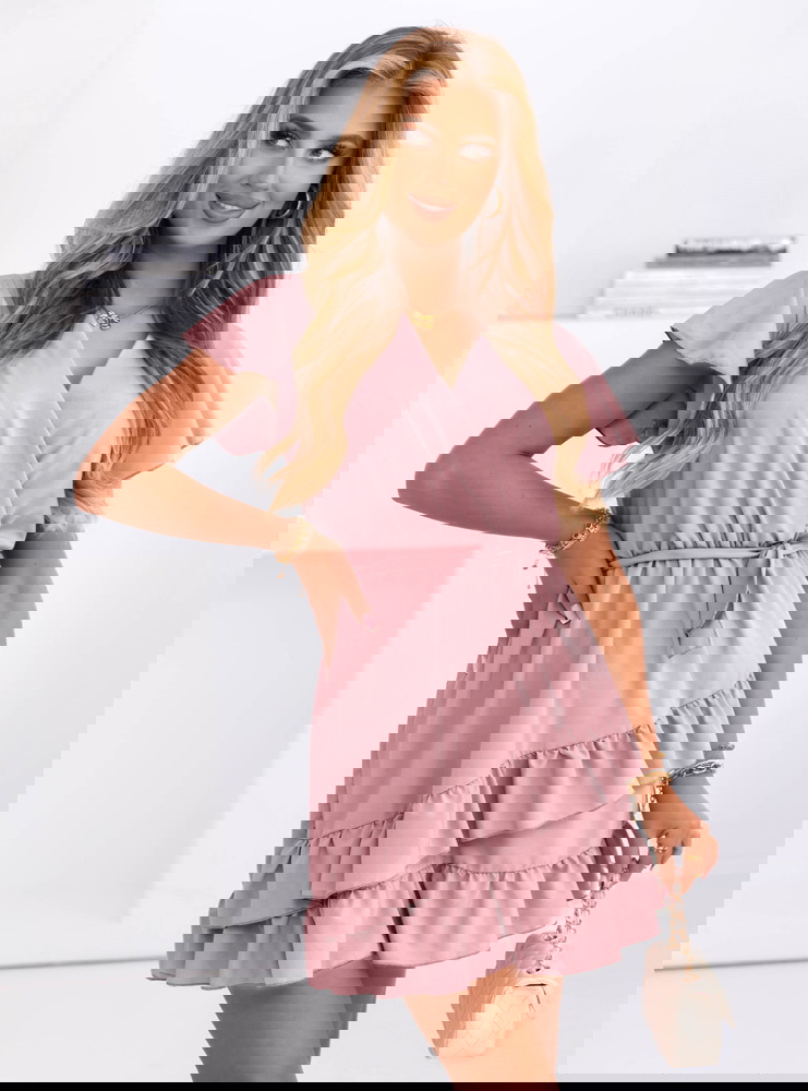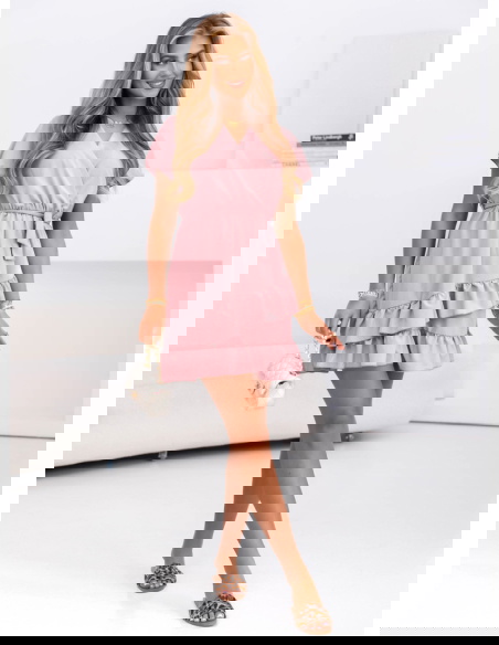 Sukienka mini z falbanami Novisa - brudny róż sprawdzi się idealnie na letnie randki, rodzinne uroczystości, wyjścia z przyjaciółmi czy spacery. Z odpowiednimi dodatkami nada się także na przyjęcia w ogrodzie czy mniej formalne wydarzenia.