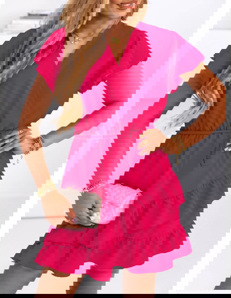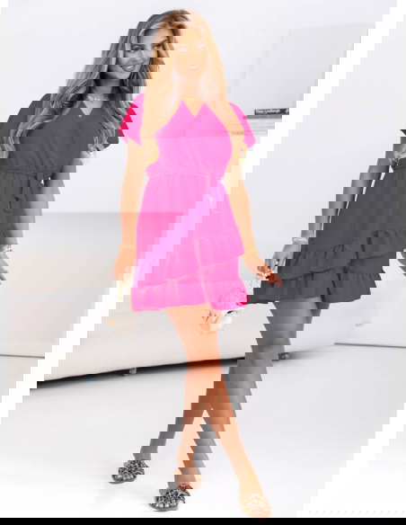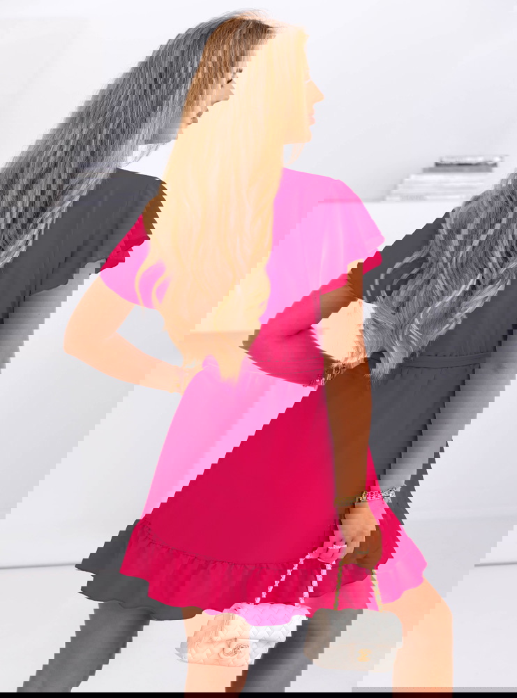 Sukienka mini z falbanami Novisar - fuksja