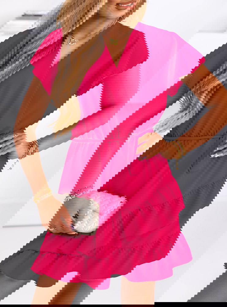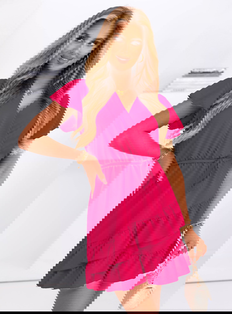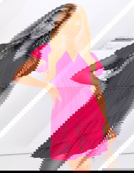 Sukienka mini z falbanami Novisar - fuksja to lekka, kobieca propozycja na cieplejsze dni, która zawsze wygląda świeżo i modnie. Jeśli lubisz wyglądać stylowo, a jednocześnie czuć się swobodnie – ten model będzie idealny.