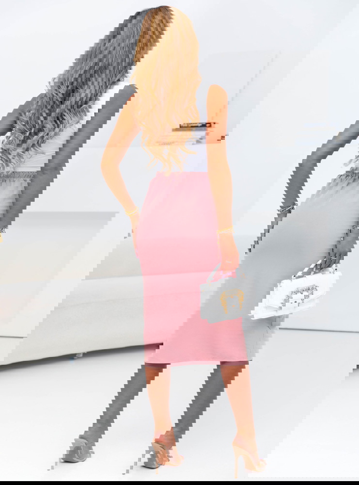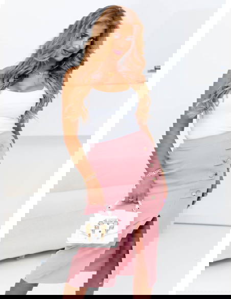 Spódnica z rozcięciem Elianne - brudny róż świetnie komponuje się z prostymi topami, eleganckimi koszulami oraz lekkimi swetrami. To wszechstronny model, który dopasujesz do wielu okazji.