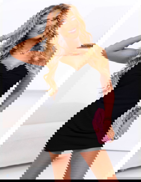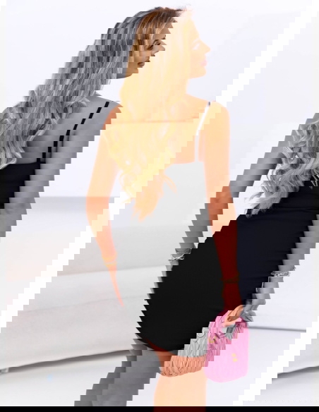 Czarna prążkowana sukienka z dekoltem Kollemia to idealna sukienka na wieczorne wyjście, randkę czy imprezę ze znajomymi. Świetnie sprawdzi się także na spacery czy wypady na miasto.