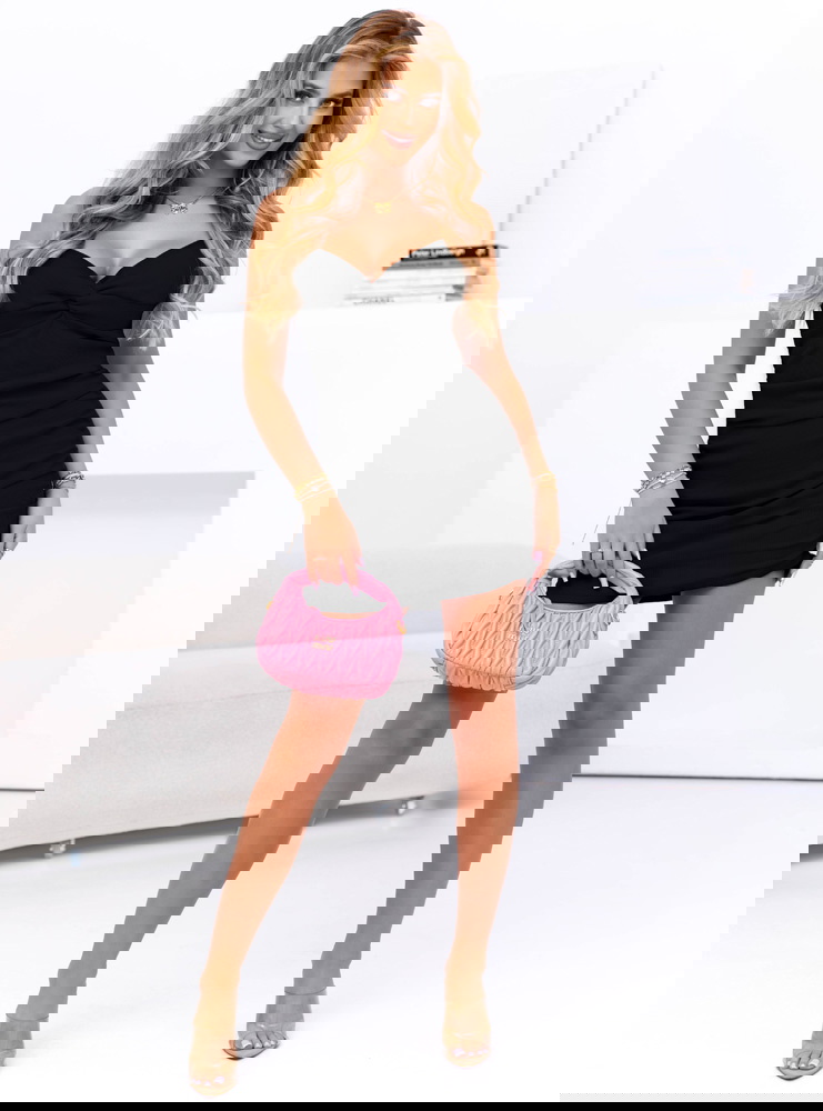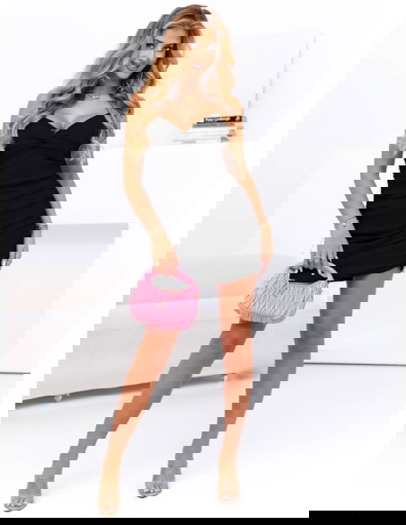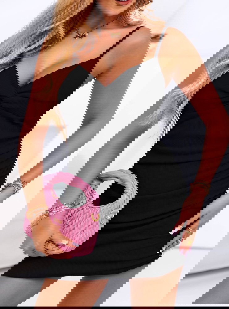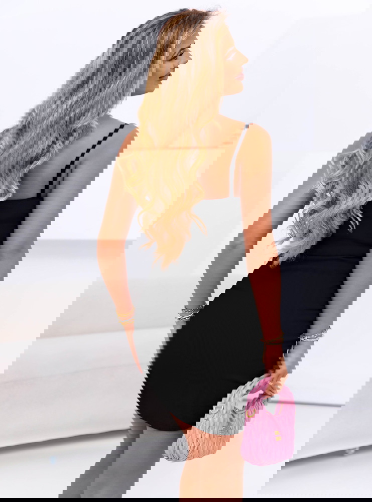 Czarna prążkowana sukienka z dekoltem Kollemia to klasyka kobiecego stylu w nowoczesnym wydaniu. Ten model świetnie łączy zmysłowość z wygodą, dzięki czemu sprawdzi się zarówno na co dzień, jak i na specjalne okazje. Prążkowany materiał subtelnie dopasowuje się do sylwetki, podkreślając jej atuty, a jednocześnie pozostaje niezwykle komfortowy w noszeniu. Głęboki dekolt pięknie eksponuje ramiona i szyję, dodając całości elegancji z lekkim pazurem. Mini długość dodaje lekkości i kobiecej pewności siebie. Ta sukienka to świetna baza do wielu stylizacji – od minimalistycznych po bardziej odważne. Dzięki uniwersalnej czerni z łatwością zestawisz ją z kolorowymi dodatkami, szpilkami lub sneakersami. Jest to model, który przyciąga uwagę bez zbędnych ozdobników – prostota i forma robią tu całą robotę. Sprawdzi się o każdej porze roku – latem solo, zimą z marynarką lub ramoneską. To po prostu must-have w kobiecej garderobie.