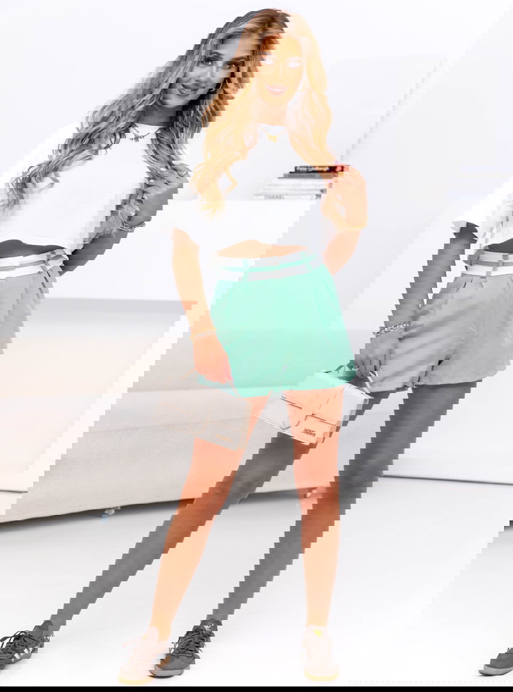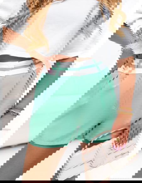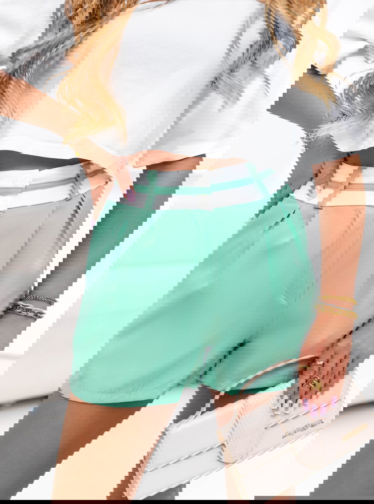Miętowe szorty z ozdobnym pasem Lecedie