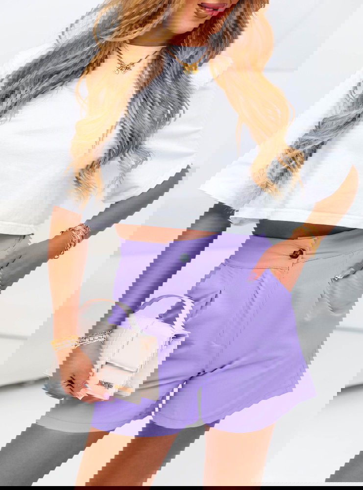 Liliowe spodenki z wysokim stanem Josee to połączenie wygody, dziewczęcego uroku i nowoczesnego stylu. Ich pastelowy odcień przyciąga uwagę i świetnie komponuje się z neutralnymi, jak i bardziej wyrazistymi kolorami. To fason, który optycznie wydłuża nogi i pięknie podkreśla talię. Spodenki mają delikatnie rozszerzane nogawki, co dodaje im lekkości i zapewnia swobodę ruchów. Zapięcie z przodu oraz eleganckie zakładki sprawiają, że model prezentuje się bardzo schludnie i modnie. Liliowy kolor dodaje świeżości i delikatności, pasując zarówno do jasnych, jak i kontrastowych stylizacji. To doskonała propozycja na cieplejsze dni, kiedy chcemy wyglądać stylowo, ale bez zbędnego wysiłku. Wysoki stan sprawia, że spodenki są bardzo wygodne i dobrze trzymają się na sylwetce. Dzięki ponadczasowemu krojowi i modnemu kolorowi, szybko staną się Twoim letnim ulubieńcem. Jeśli szukasz czegoś prostego, ale efektownego – te spodenki sprawdzą się idealnie.