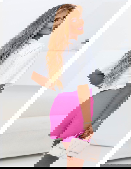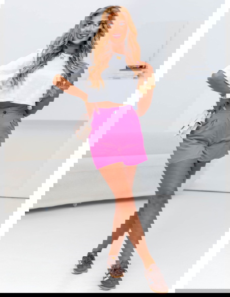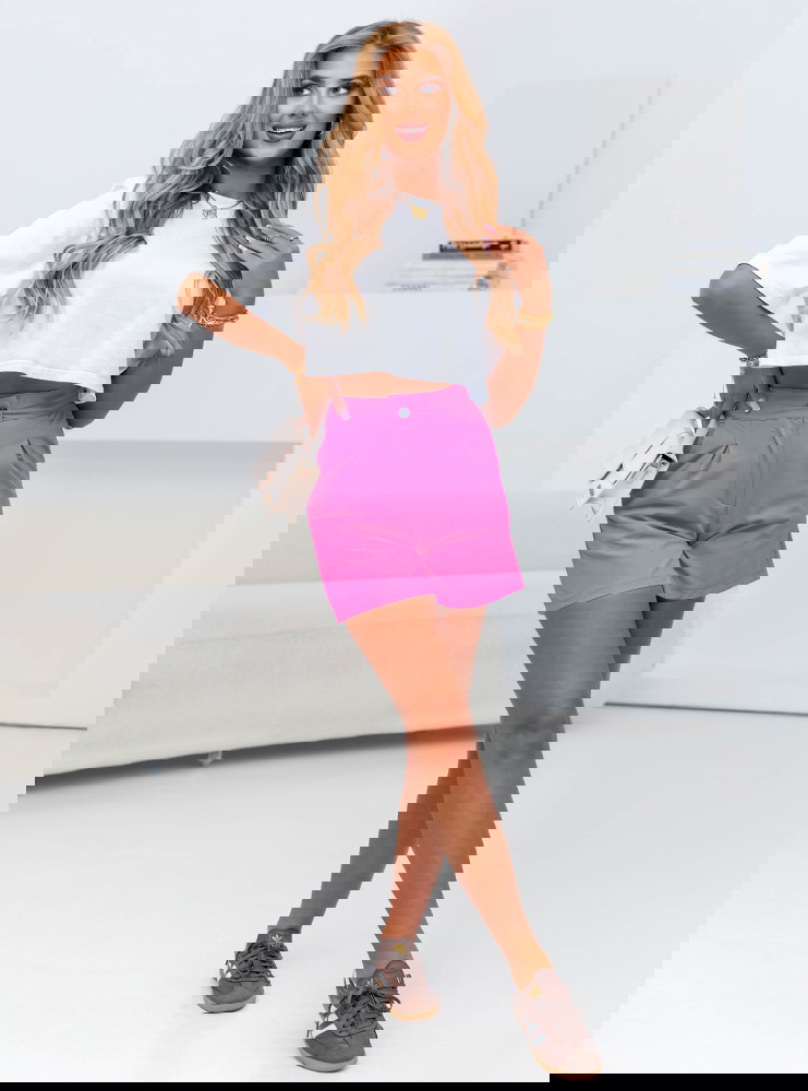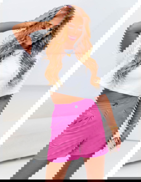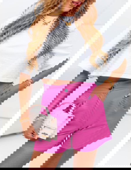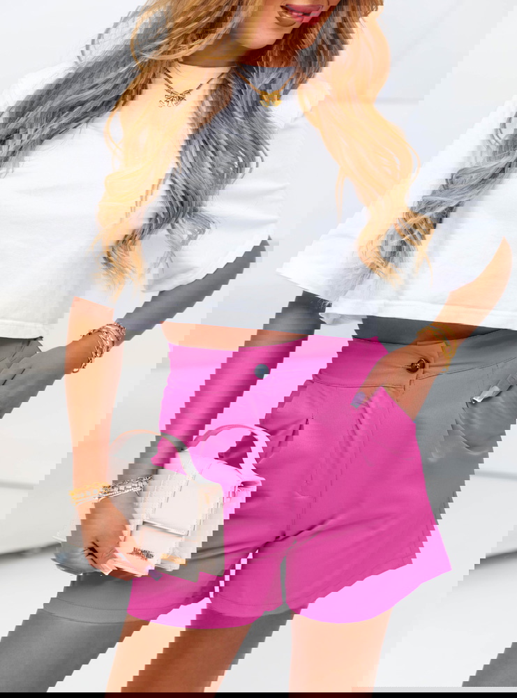 Spodenki z wysokim stanem Josee - fuksja to energetyczna propozycja, która wniesie świeżość do Twojej garderoby. Kolor fuksji przyciąga spojrzenia i świetnie podkreśla letnią opaleniznę. Ten model to idealne połączenie kobiecego stylu i codziennej wygody. Krój z wysokim stanem pięknie akcentuje talię, dodając sylwetce proporcji. Delikatne zakładki z przodu wprowadzają subtelny akcent elegancji. Spodenki są lekkie, swobodne i nie ograniczają ruchów. Z łatwością zestawisz je zarówno z t-shirtem, jak i bardziej elegancką bluzką. Możesz nosić je do pracy, na wyjście ze znajomymi lub spacer po mieście. Uniwersalny fason sprawia, że dopasujesz je do wielu stylów. To baza dla letnich stylizacji, które zawsze wyglądają świetnie.