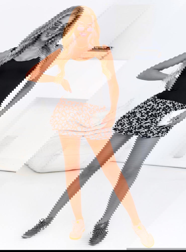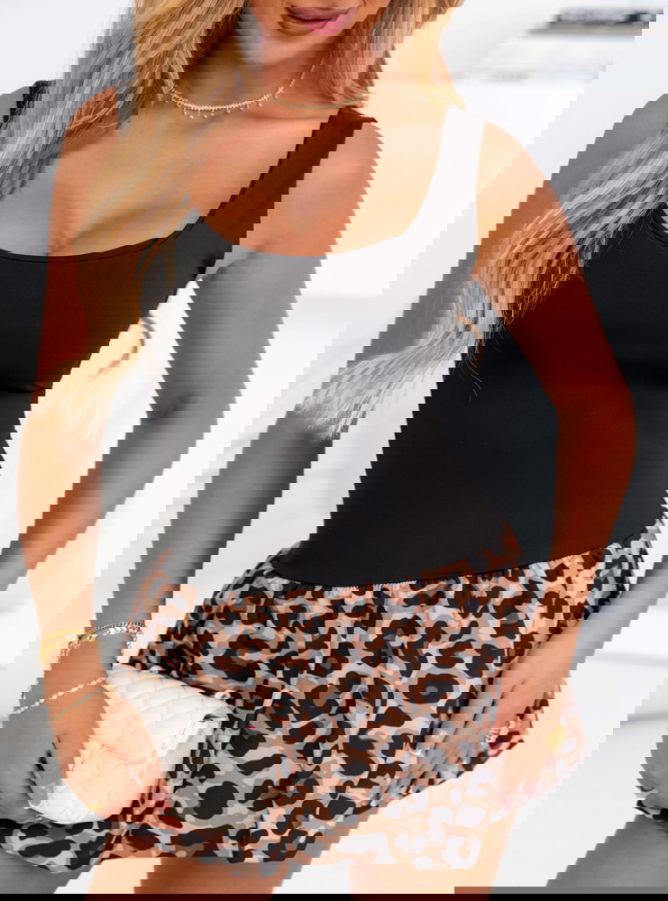 Sukienka mini typu bombka w panterkę Emmalia - wzór 4 to propozycja dla kobiet, które lubią bawić się modą i przyciągać spojrzenia. Zmysłowy, dopasowany top pięknie podkreśla dekolt i ramiona, a rozkloszowany dół w stylu bombki dodaje objętości i uroku. Panterkowy print jest ponadczasowy i zawsze przyciąga uwagę – niezależnie od sezonu. To idealne połączenie kobiecości, odwagi i modowego wyczucia. Sukienka świetnie układa się na sylwetce i dodaje stylizacji charakteru. To model, który nie potrzebuje wielu dodatków – sam w sobie robi wrażenie. Świetnie sprawdzi się zarówno w stylizacji na randkę, jak i na wieczorne wyjście z przyjaciółkami. Wystarczy dodać szpilki lub modne sandały i jesteś gotowa na podbój miasta. To fason, który podkreśla figurę i daje Ci pewność siebie. Jeśli lubisz odważniejsze, ale wciąż eleganckie rozwiązania – to model stworzony dla Ciebie.