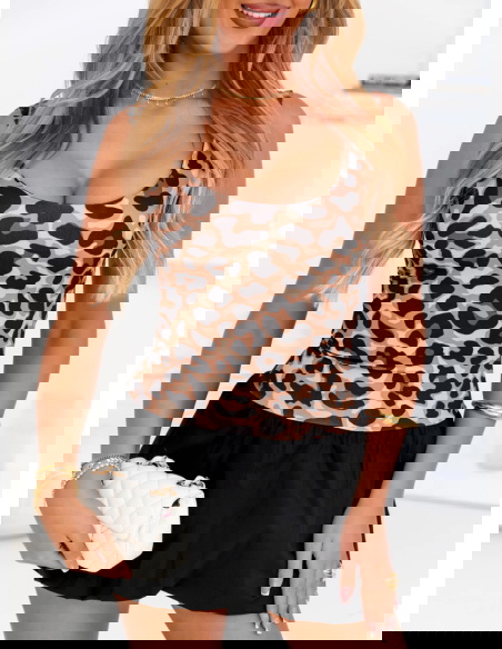 Sukienka mini typu bombka w panterkę Sabinne - wzór 4 to doskonała propozycja na letnie imprezy, randki czy spontaniczne spotkania ze znajomymi. Sukienka świetnie sprawdzi się również podczas wakacyjnych wyjazdów czy wieczornych spacerów.