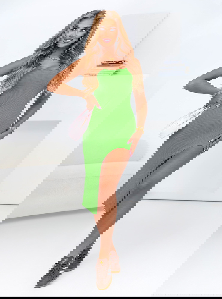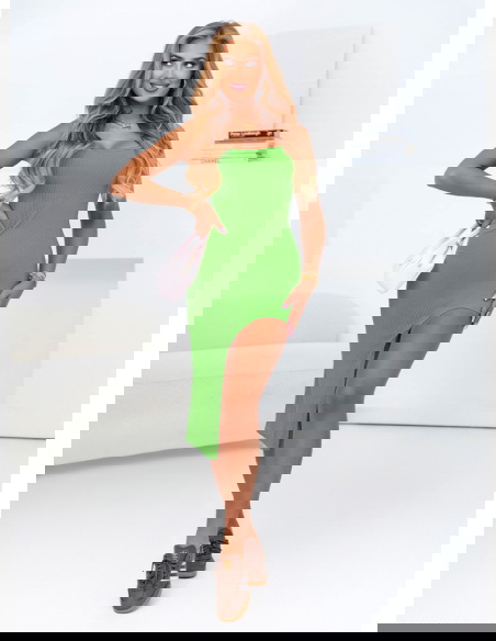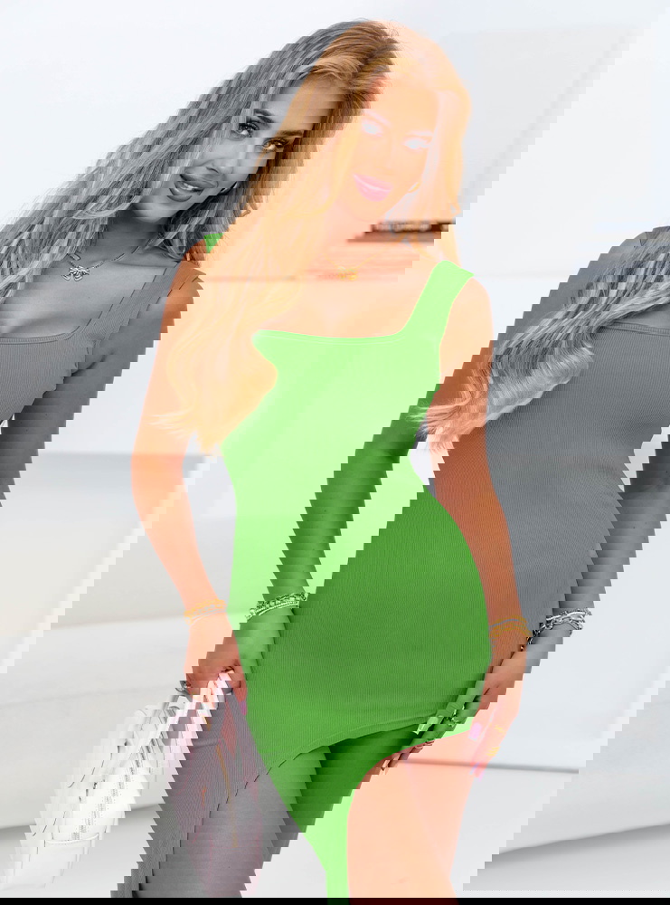Zielona sukienka na ramiączkach Consstanza to modowy hit, który z miejsca przyciąga spojrzenia. Jej intensywny kolor dodaje energii i świeżości każdej stylizacji. Dopasowany krój pięknie podkreśla kobiecą sylwetkę, a prążkowana faktura nadaje całości nowoczesnego charakteru. Asymetryczny dół z efektownym rozcięciem nadaje sukience lekkości i zmysłowości. Ramiączka oraz dekolt w kwadratowym kształcie subtelnie eksponują ramiona i obojczyki. To sukienka, która sprawia, że czujesz się kobieco, ale bez przesady. Możesz założyć ją zarówno do sportowych butów, jak i eleganckich sandałków – wszystko zależy od nastroju. Jest wygodna, ale niebanalna – idealna na co dzień i na specjalne chwile. Jej prostota pozwala na wiele stylizacyjnych wariacji. Jeśli szukasz sukienki, która łączy wygodę z wyrazistym stylem – ta propozycja jest właśnie dla Ciebie.