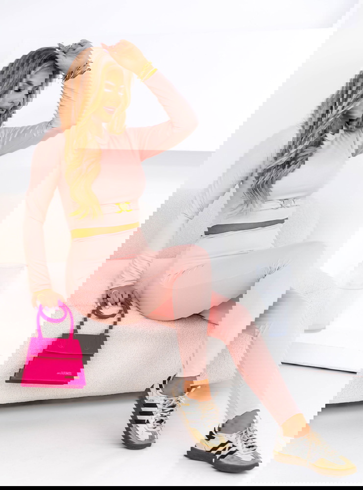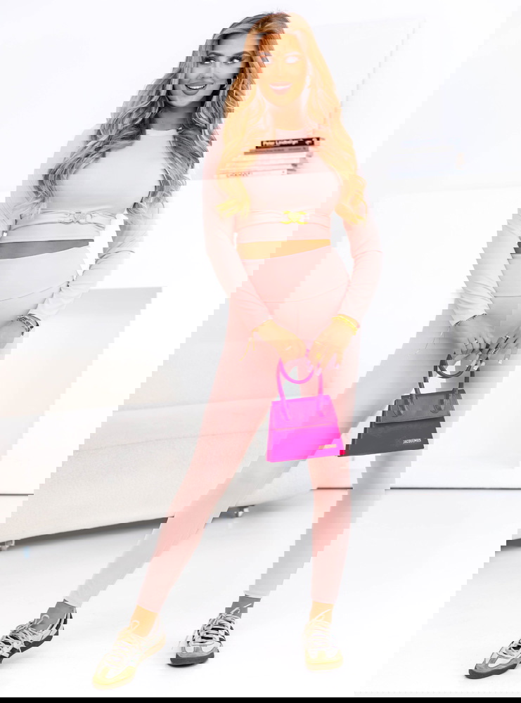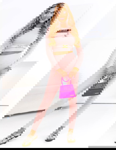 Pudrowy komplet top z długim rękawem i spodnie Roosie to propozycja, która łączy wygodę z kobiecym, dopracowanym wyglądem. To zestaw, który zachwyca swoją lekkością i delikatną kolorystyką. Pudrowy róż wprowadza subtelność i świeżość do codziennej garderoby, jednocześnie pozwalając wyróżnić się z tłumu. Dopasowany top z długim rękawem posiada stylowe, ozdobne zapięcie z przodu, które przyciąga wzrok i dodaje charakteru. Wysoki stan spodni pięknie podkreśla talię i optycznie wydłuża nogi. Całość wygląda niezwykle harmonijnie, a jednocześnie bardzo modnie. Ten komplet to doskonały balans między stylem codziennym a dopracowaną sylwetką. Możesz założyć go na luzie, ale zawsze wygląda stylowo i schludnie. Sprawdzi się zarówno z obuwiem sportowym, jak i z kobiecymi dodatkami. Jeśli szukasz stylizacji „gotowej do wyjścia” bez zbędnego kombinowania – ten zestaw będzie idealny.