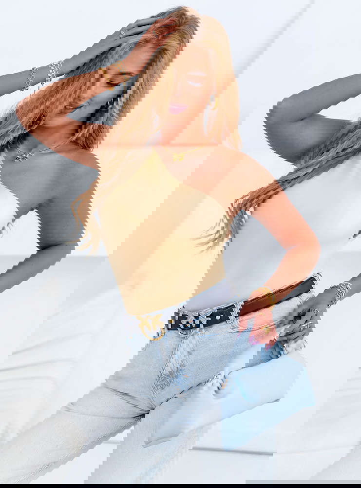 Beżowe dopasowane body na jedno ramię Aleeta