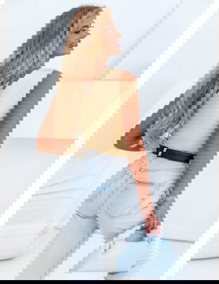 Modelka prezentuje produkty o rozmiarach S/M