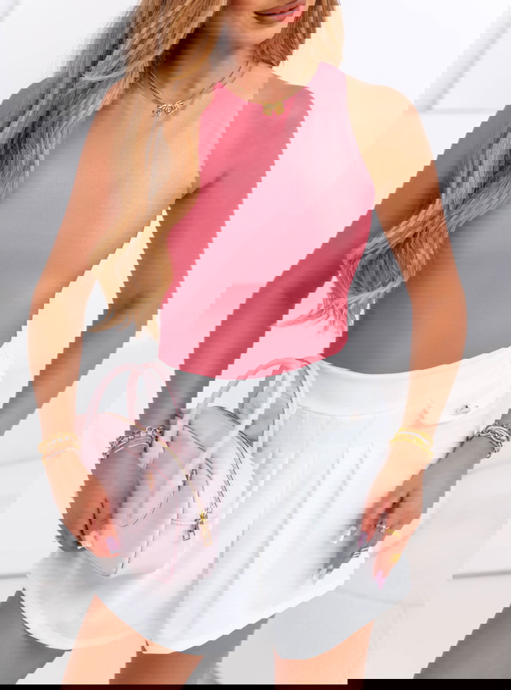 Różowe dopasowane body Kassidey to kobiecy klasyk w nowoczesnym wydaniu, który pokochasz za jego uniwersalność i subtelny urok. Ten model wyróżnia się prostą formą, która dzięki intensywnemu kolorowi nabiera wyjątkowego charakteru. Gładka faktura materiału pięknie przylega do sylwetki, podkreślając kobiece kształty i zapewniając pełen komfort noszenia. Zabudowany dekolt nadaje całości elegancji i nowoczesnego stylu. Body świetnie sprawdza się jako baza do wielu stylizacji – pasuje zarówno do spódniczek, jak i jeansów czy materiałowych spodni. Różowy odcień ożywia look i dodaje mu dziewczęcej świeżości. To propozycja, która sprawdzi się o każdej porze roku – wystarczy dobrać odpowiednie dodatki. Krój bez rękawów eksponuje ramiona, podkreślając ich smukłość. To idealny wybór na letnie dni, ale też świetna opcja pod marynarkę czy oversize’owy sweter. Jeśli szukasz czegoś wygodnego, kobiecego i stylowego – to body będzie strzałem w dziesiątkę.
