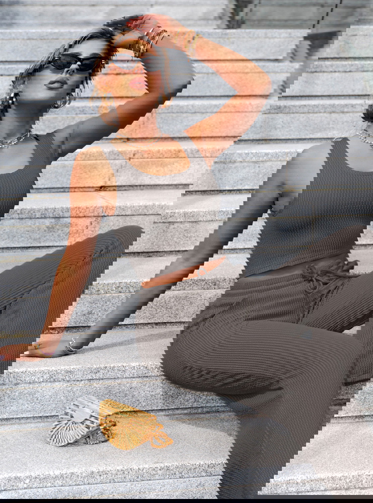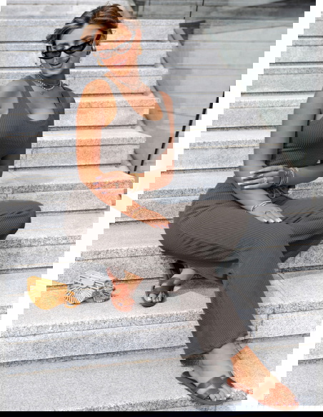 Grafitowy komplet top i szerokie spodnie Suellen idealnie sprawdzi się na co dzień, na spacer, zakupy, wakacyjny wypad czy spotkanie w mieście. Jest świetną opcją na weekend, dłuższą podróż lub chill z przyjaciółmi.