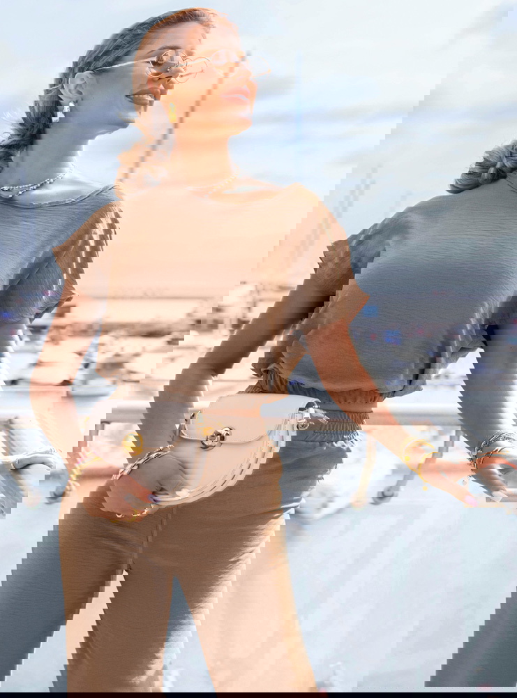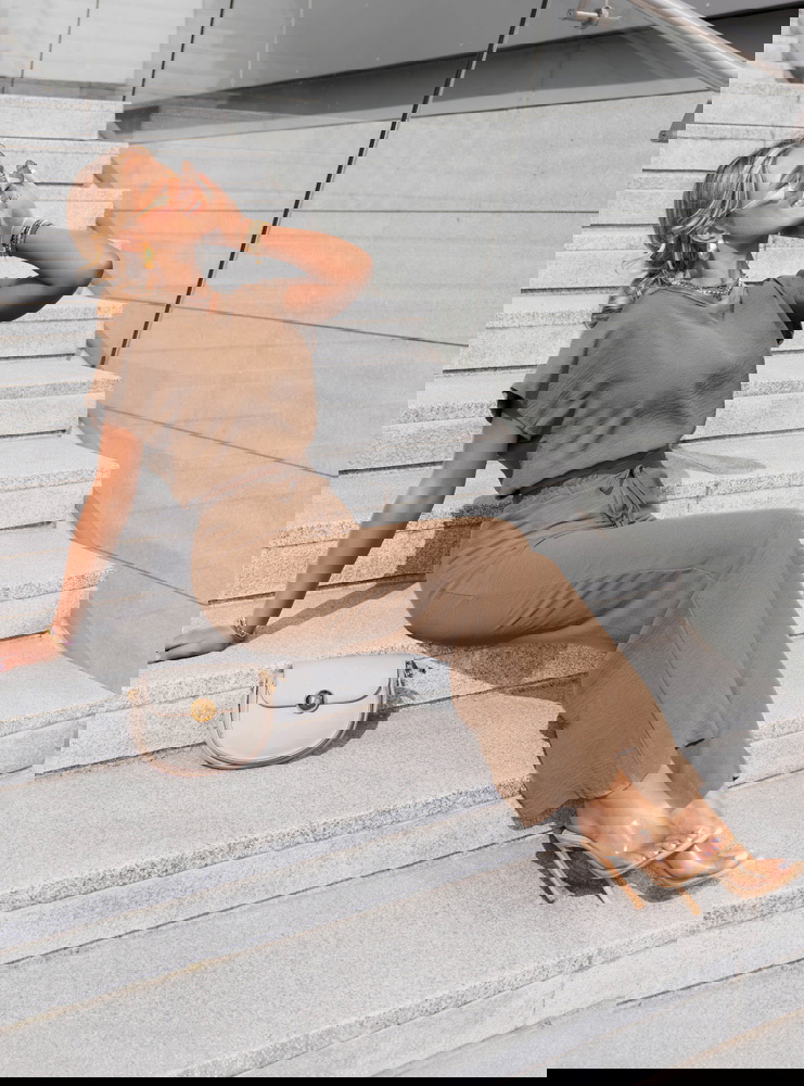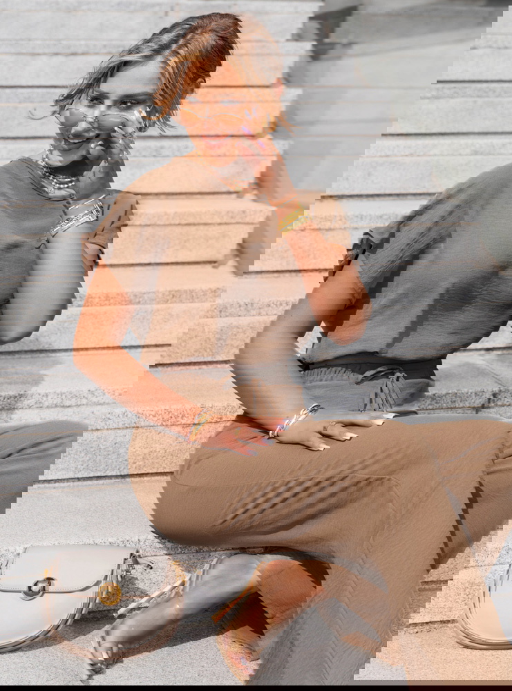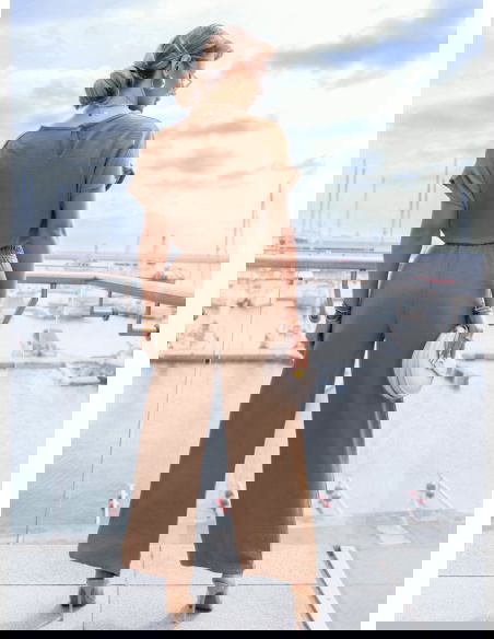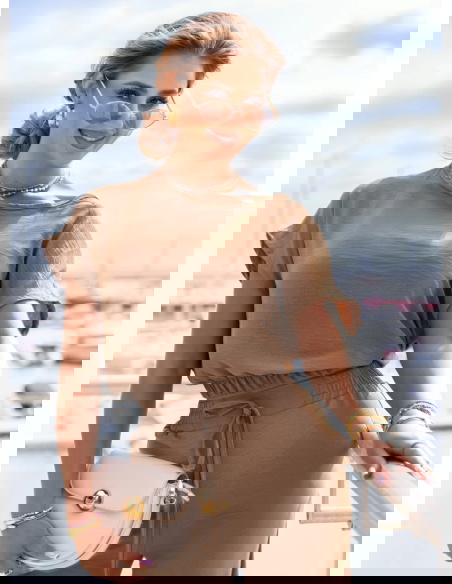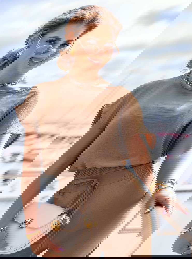 Komplet bluzka i szerokie spodnie Tangalee - mocha mousse to idealna propozycja dla kobiet ceniących wygodę i styl w jednej, spójnej formie. Ten zestaw to połączenie swobodnego kroju z elegancką, stonowaną kolorystyką, która pasuje na każdą porę roku. Ciepły odcień mocha pięknie komponuje się z opalenizną i dodaje stylizacjom przytulnego, naturalnego charakteru. Luźna bluzka z krótkim rękawem i subtelnym zapięciem z tyłu to gwarancja komfortu i delikatnego kobiecego akcentu. Spodnie z wysokim stanem i szerokimi nogawkami optycznie wydłużają sylwetkę i sprawiają, że całość wygląda bardzo nowocześnie i lekko. Krój zestawu jest bardzo uniwersalny – nie krępuje ruchów, a jednocześnie prezentuje się stylowo i z klasą. Ten komplet to idealny wybór na wiele okazji – od codziennych spacerów po stylowe wyjścia. Możesz go wystylizować na elegancko ze szpilkami lub bardziej casualowo ze sneakersami. Dodaj torebkę i biżuterię, a Twoja stylizacja będzie gotowa w kilka sekund. To zestaw, w którym poczujesz się modnie, wygodnie i pewnie – bez względu na porę dnia.